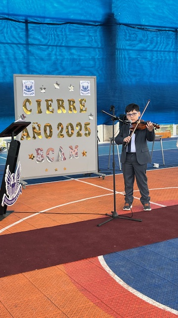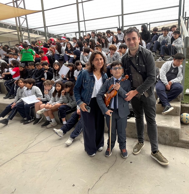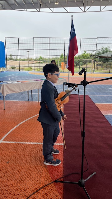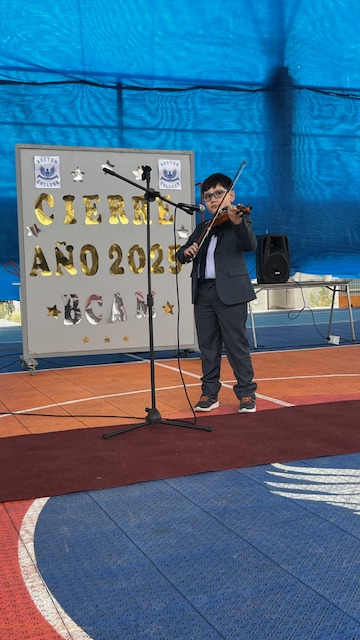 Agradecemos especialmente a nuestro alumno Maximiliano Garrido Parada, quien nos deleitó con su interpretación en violín. También agradecemos a nuestras alumnas y alumnos de 3° y 4° Básicos, quienes nos regalaron una linda coreografía navideña, preparada junto a las profesoras Miss Nadia Gallardo y Miss Maluchi Castillo.