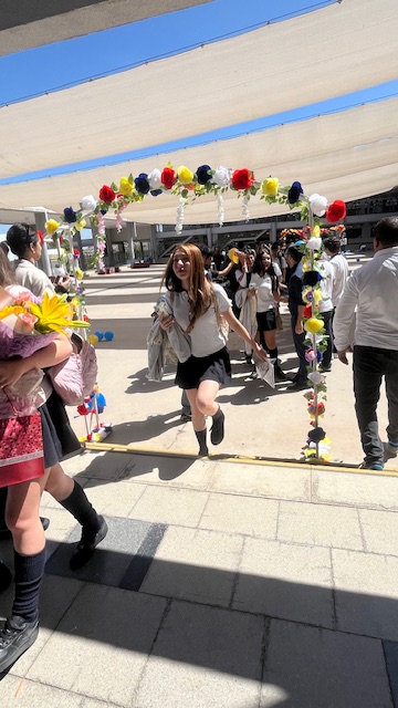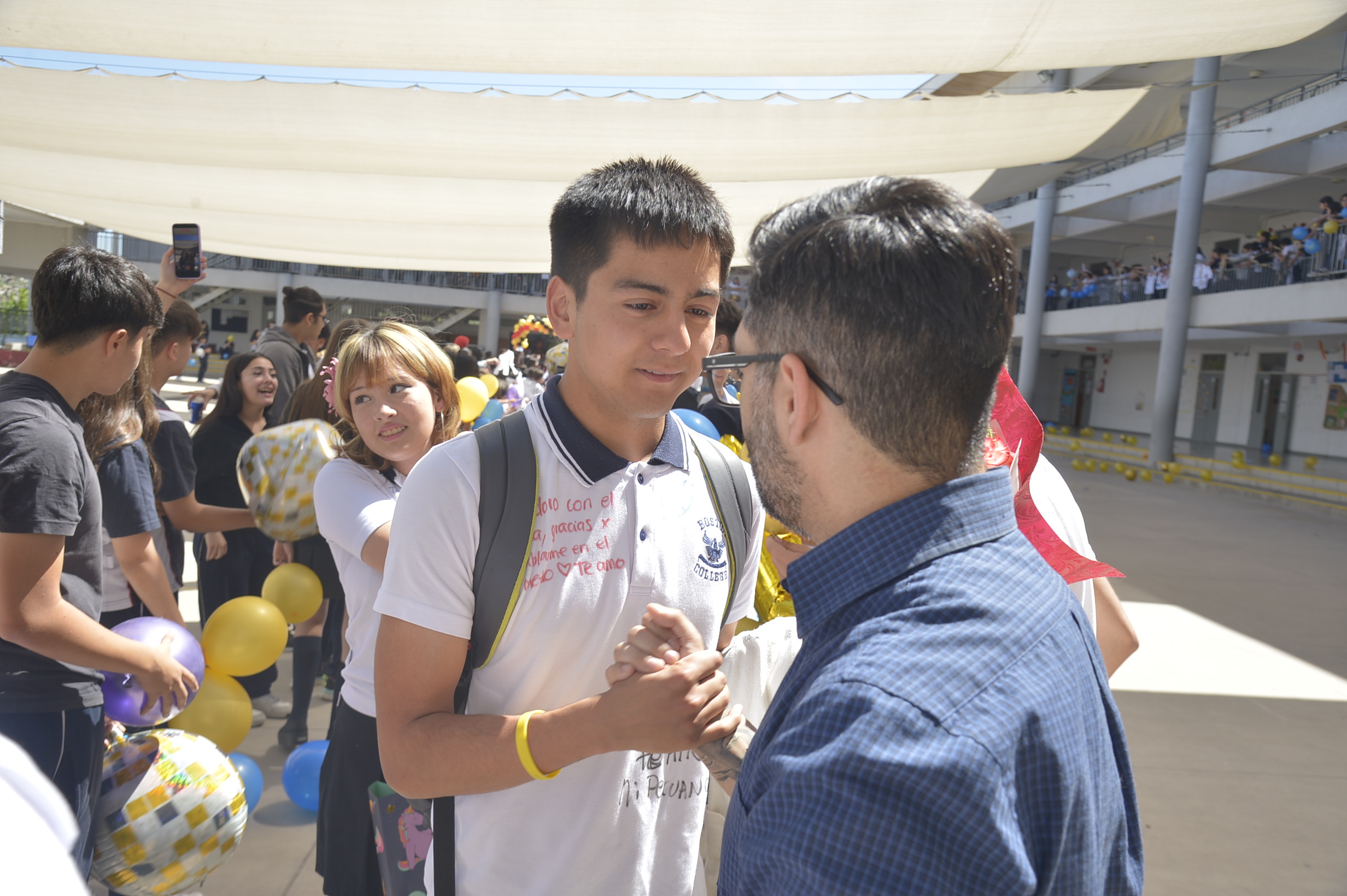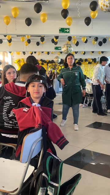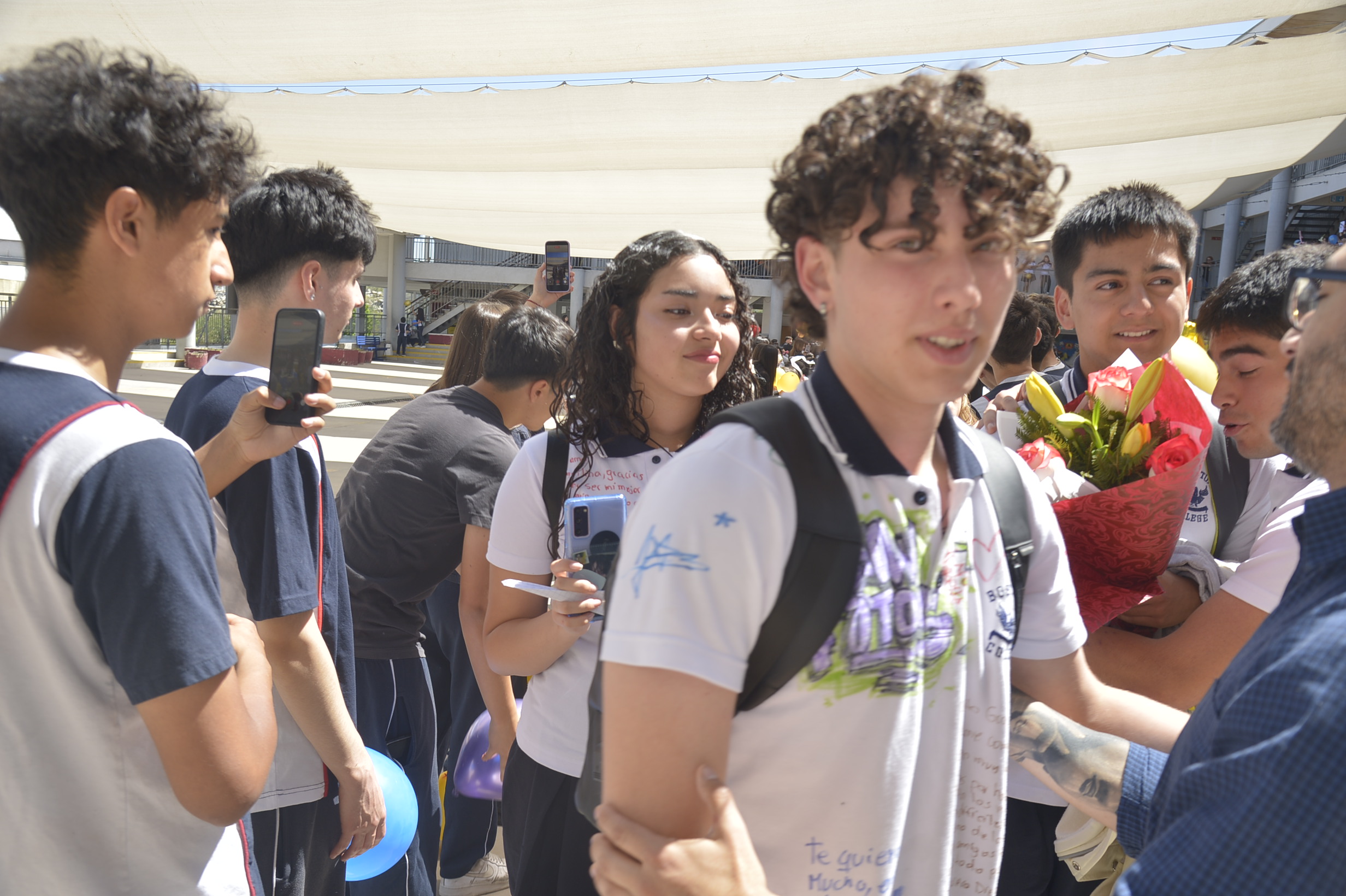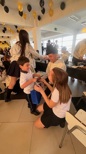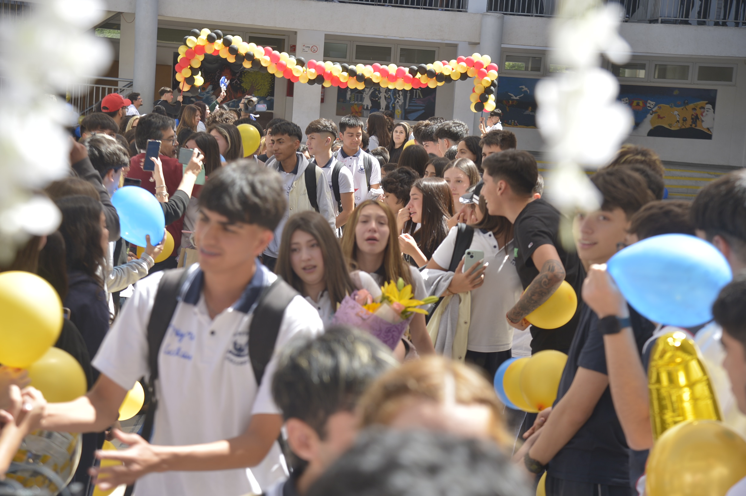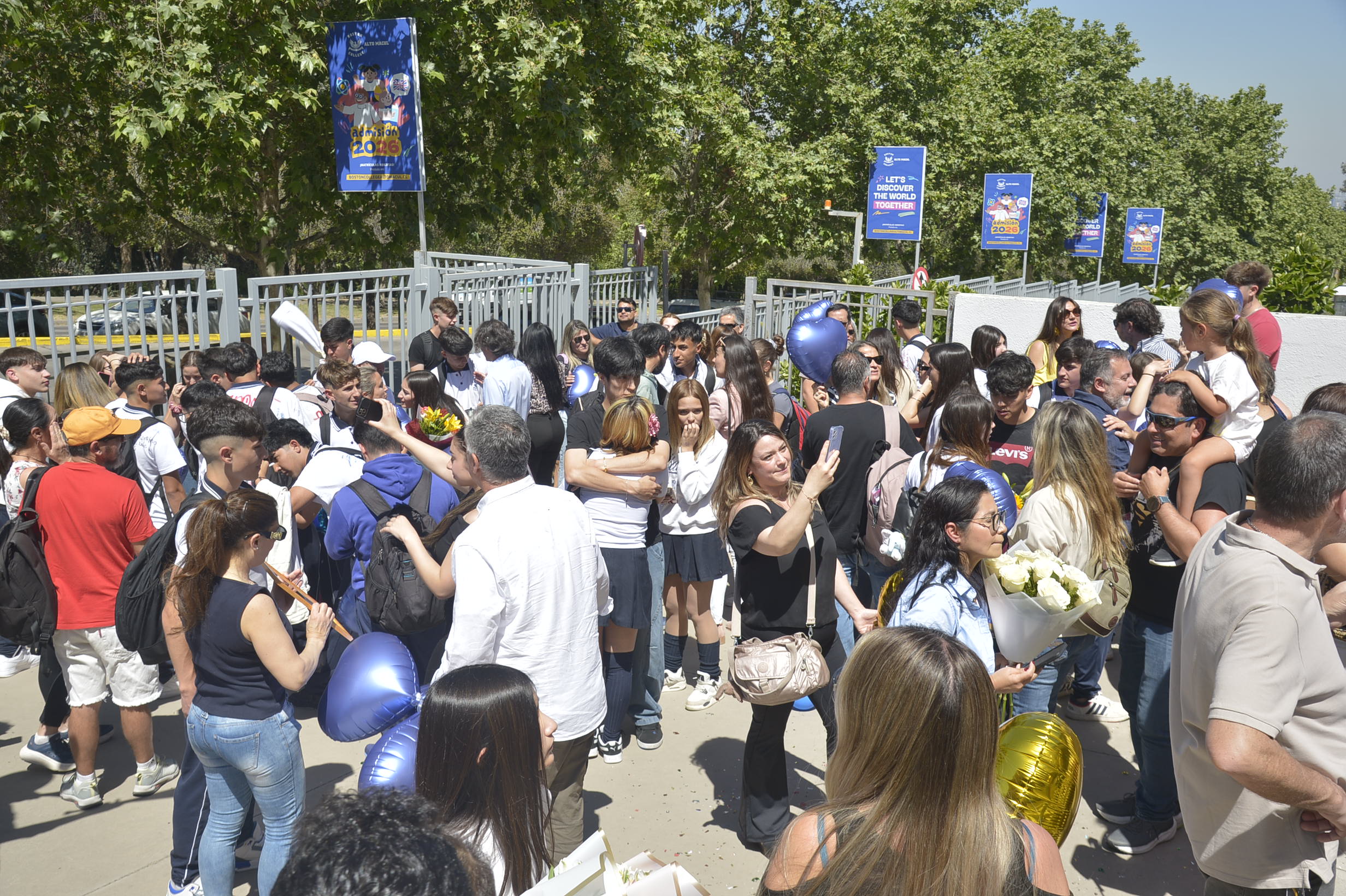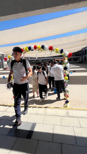 Al mediodía, llegaron los padres y apoderados de los y las estudiantes a buscarlos(as) y todo el colegio se formó en el patio central con cintas azules y blancas, globos y aplausos para despedirlos(as); fue un momento de gran emoción para todos(as).