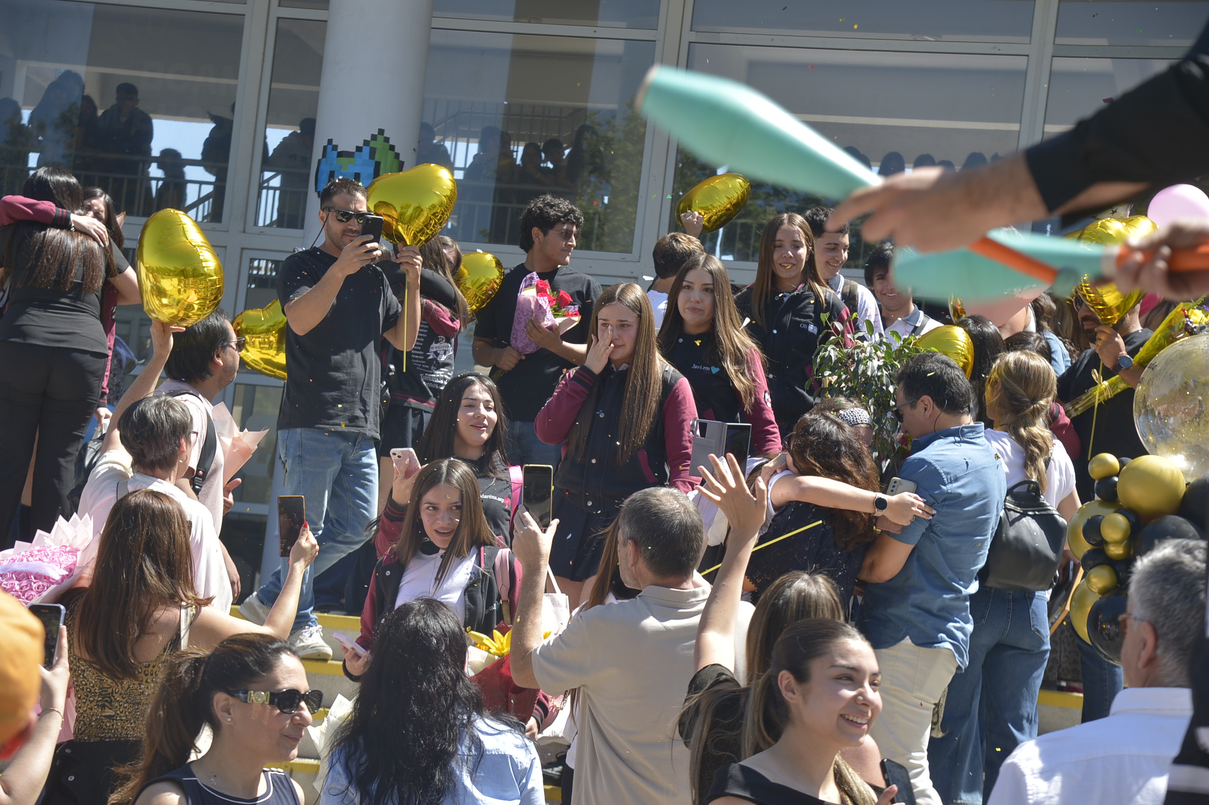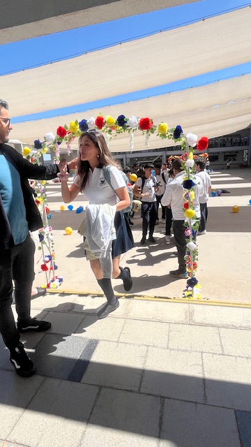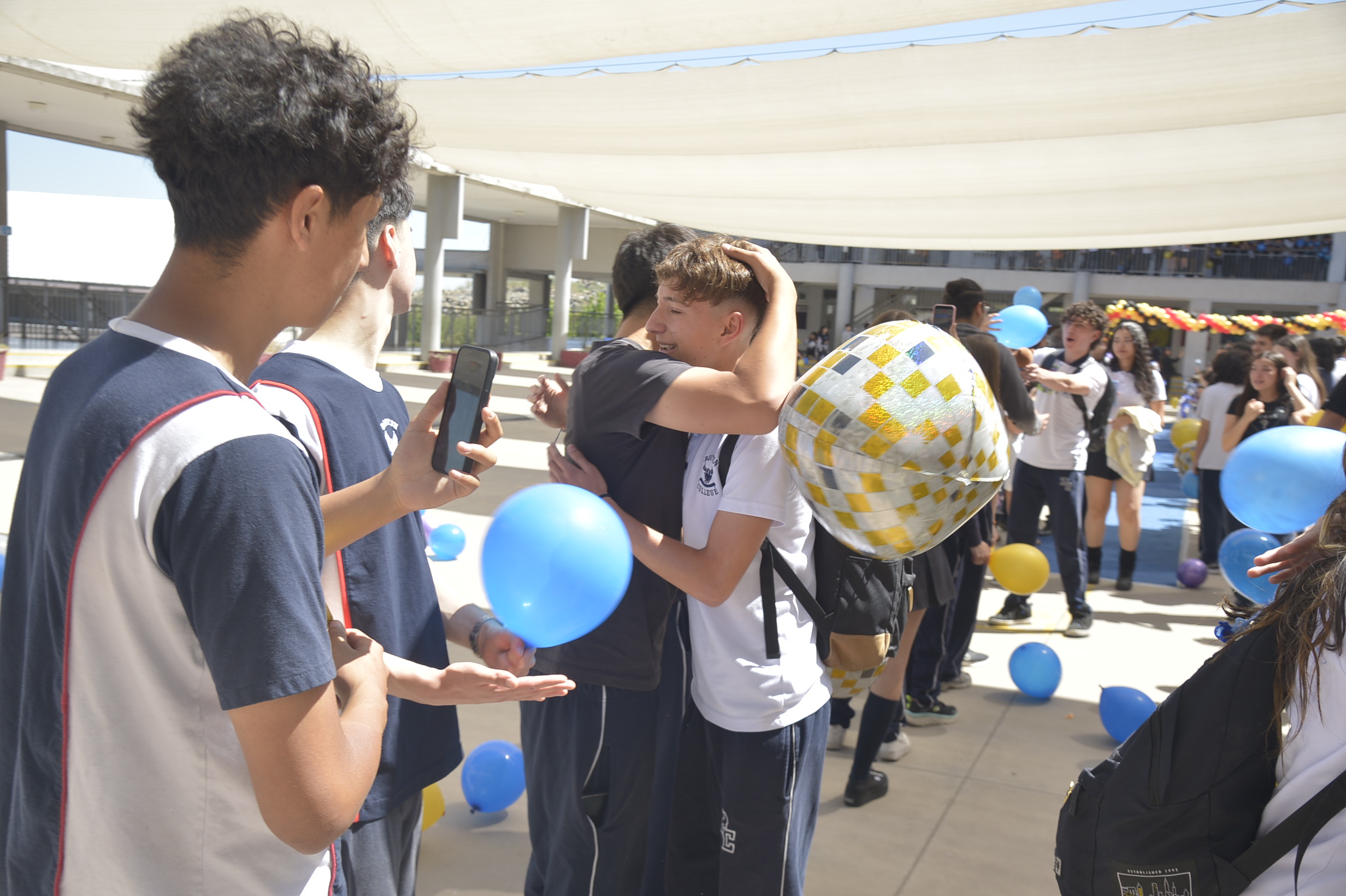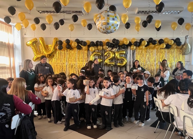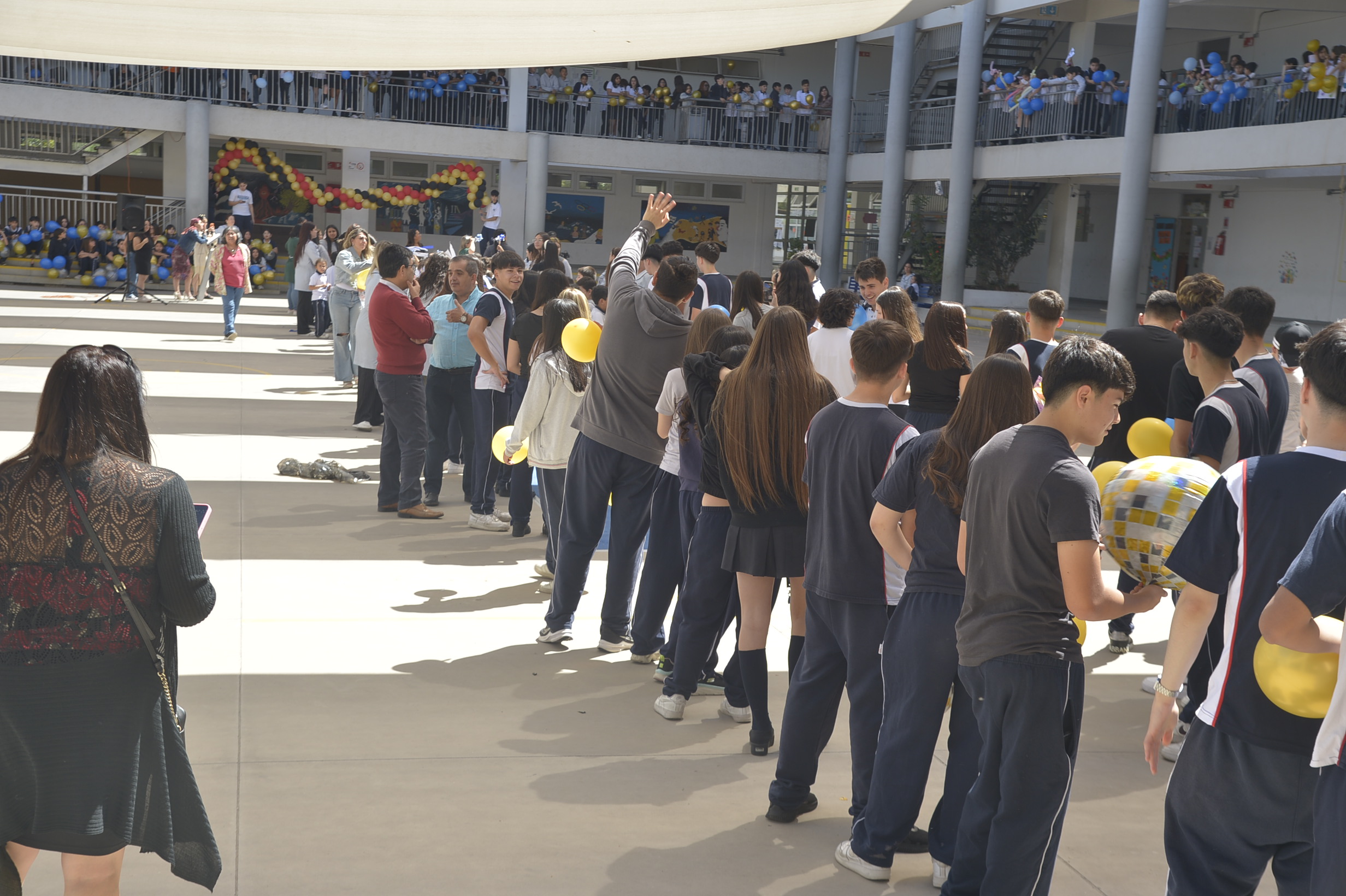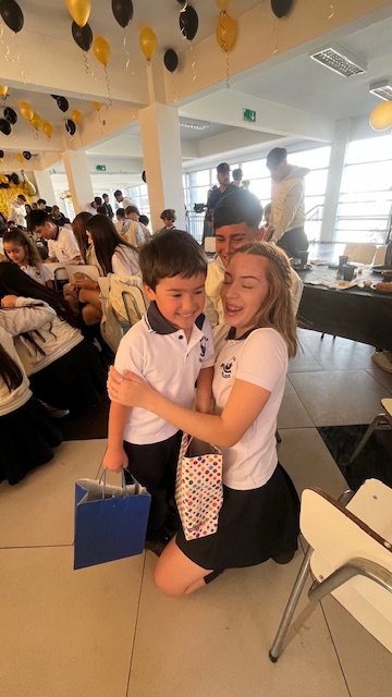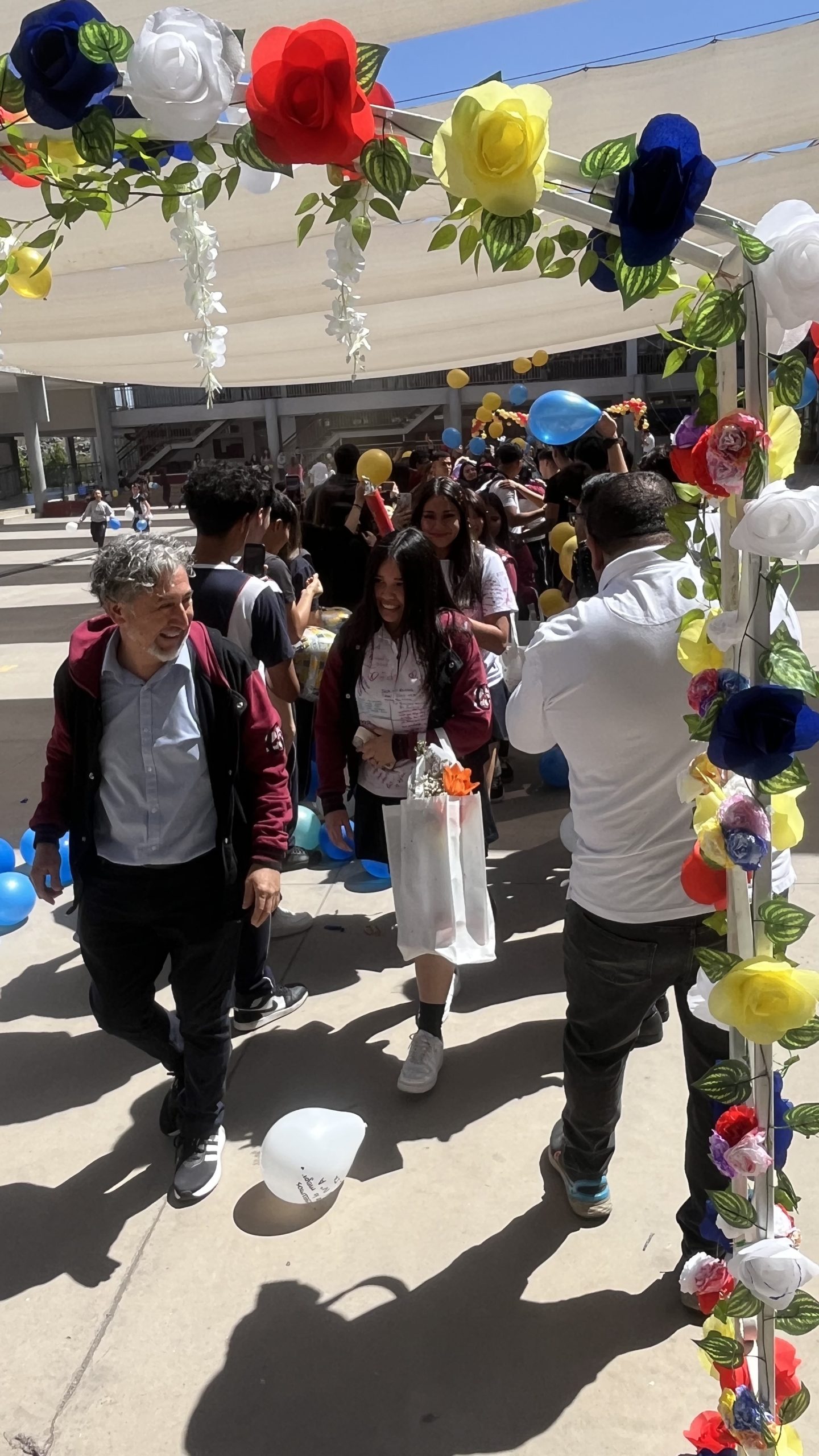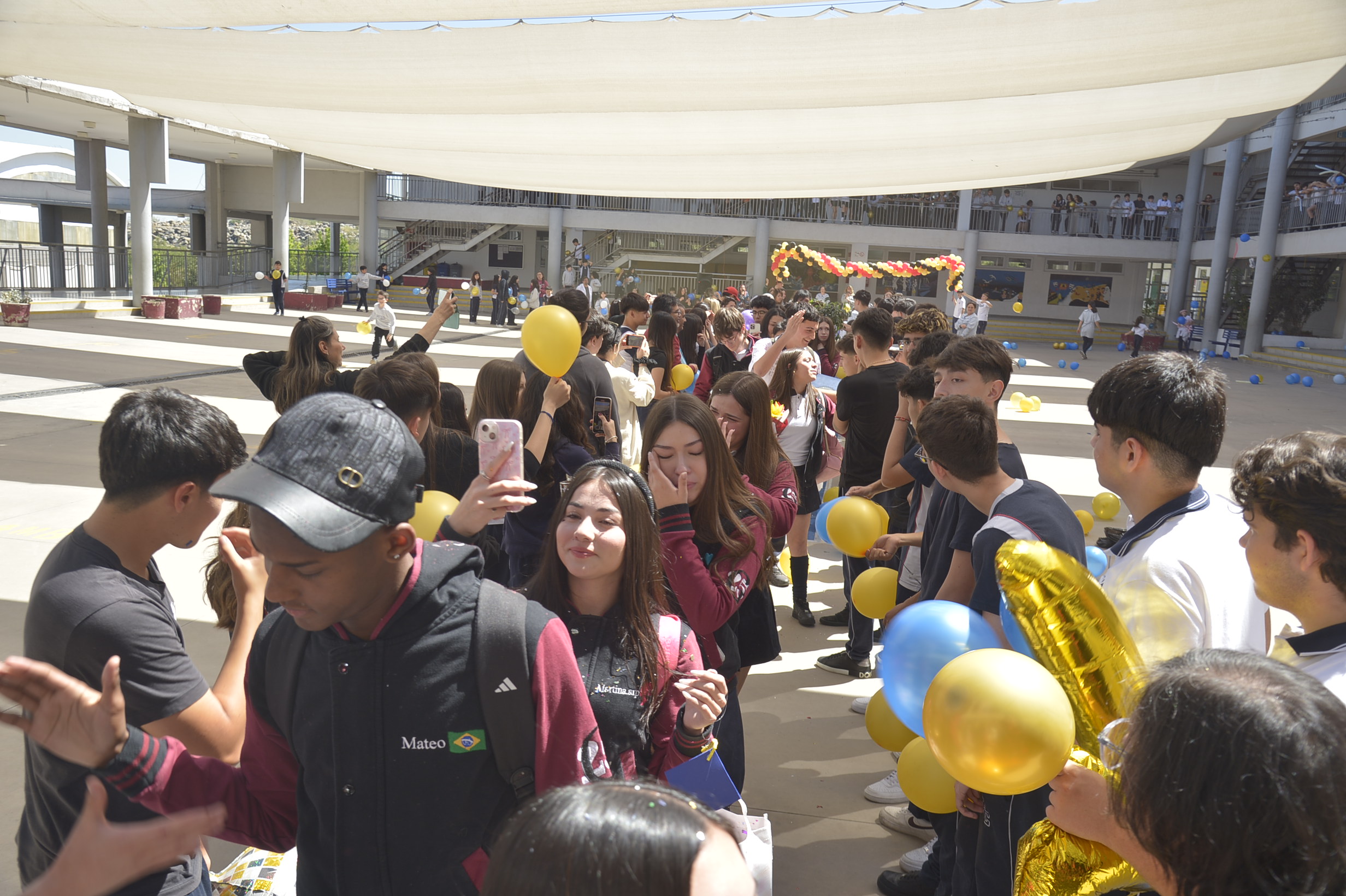 Al mediodía, llegaron los padres y apoderados de los y las estudiantes a buscarlos(as) y todo el colegio se formó en el patio central con cintas azules y blancas, globos y aplausos para despedirlos(as); fue un momento de gran emoción para todos(as).