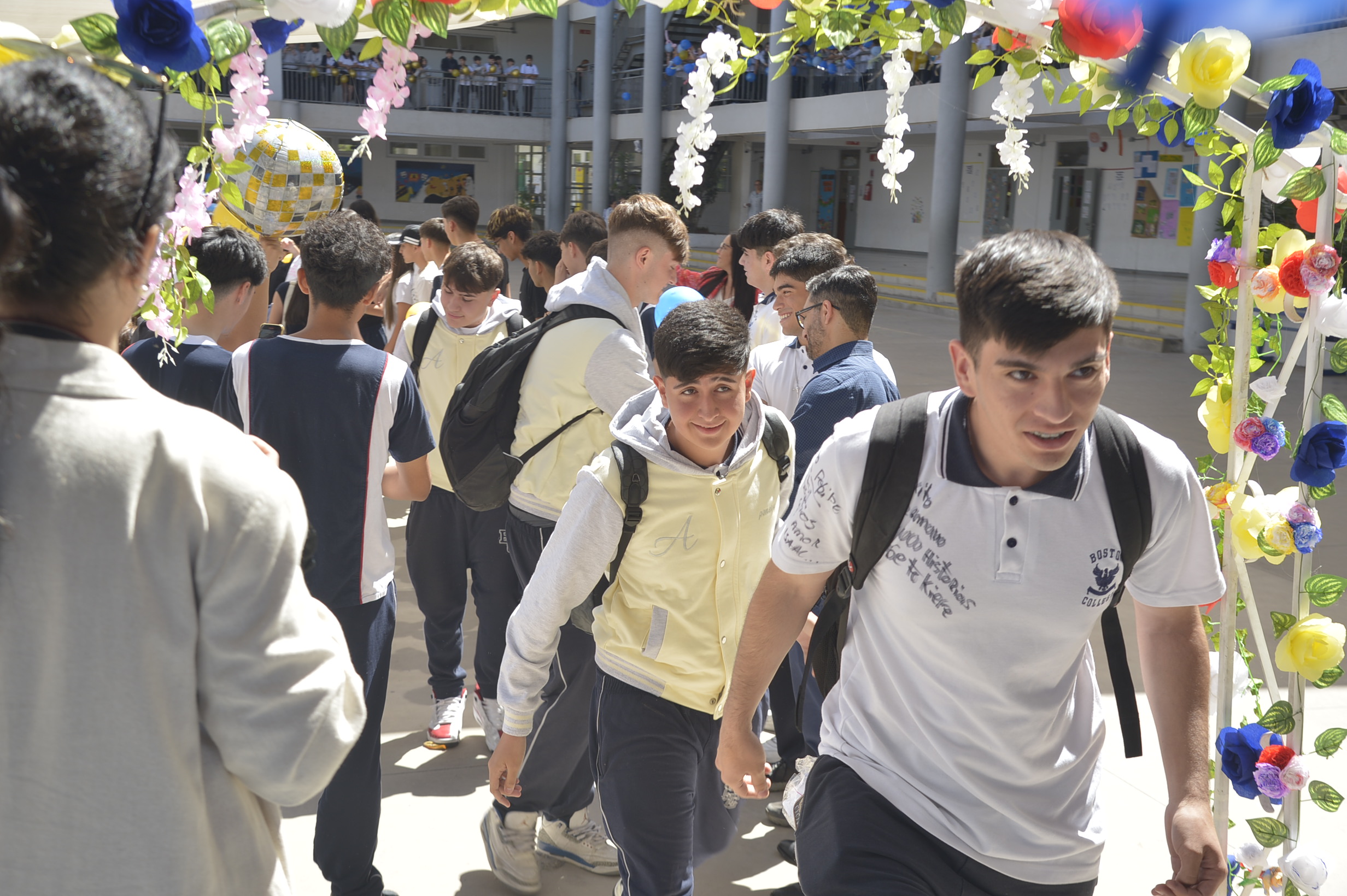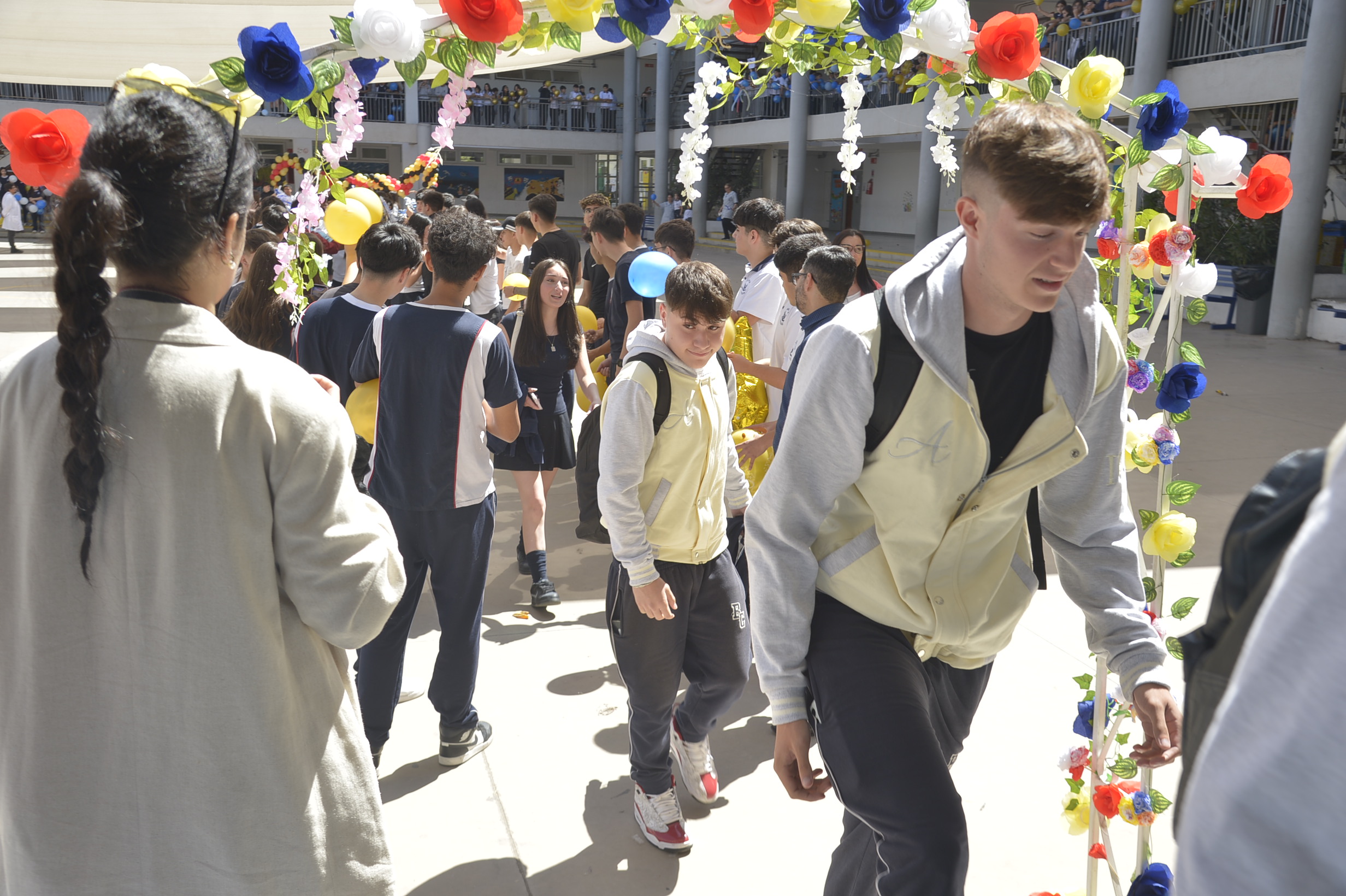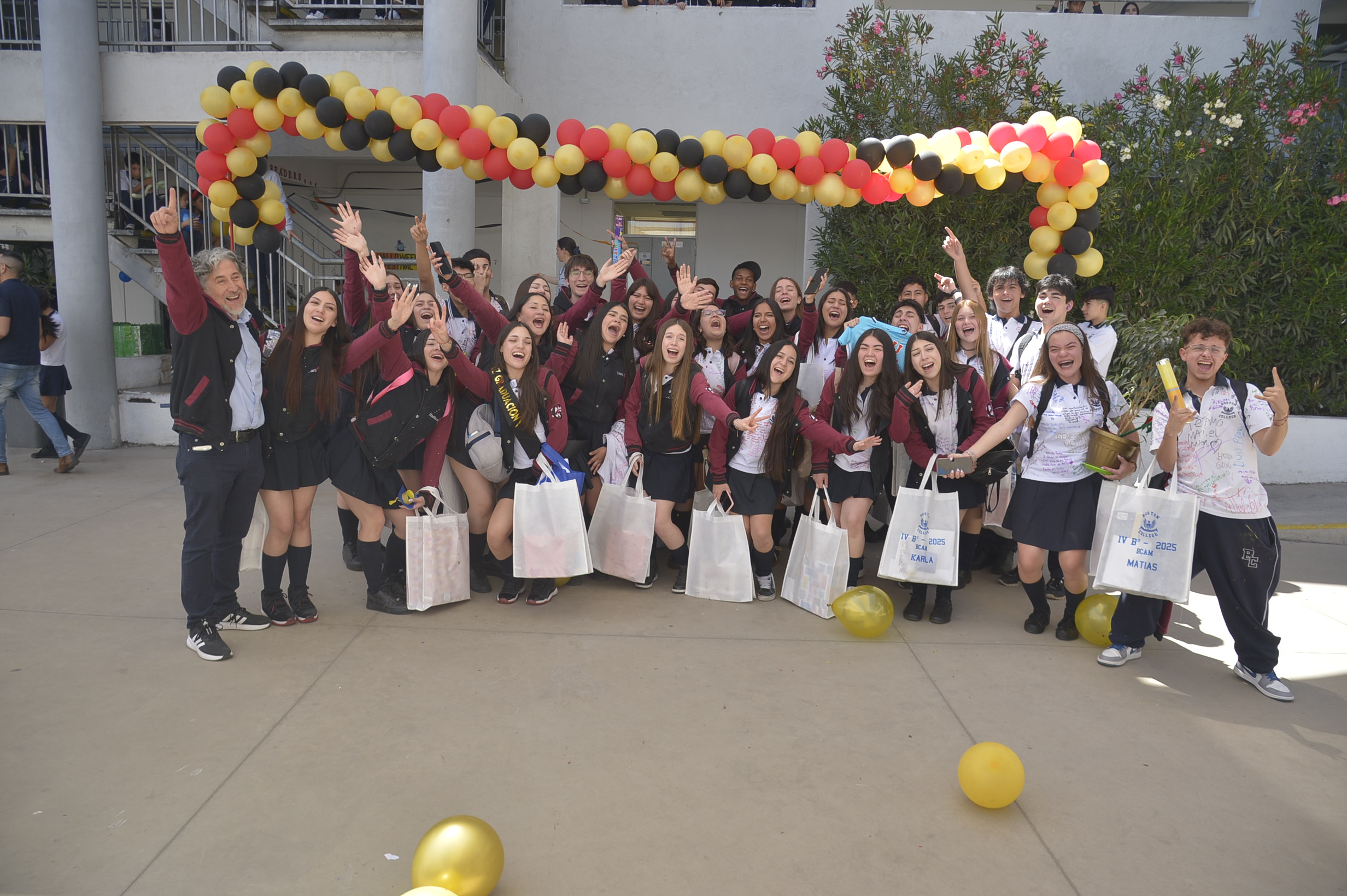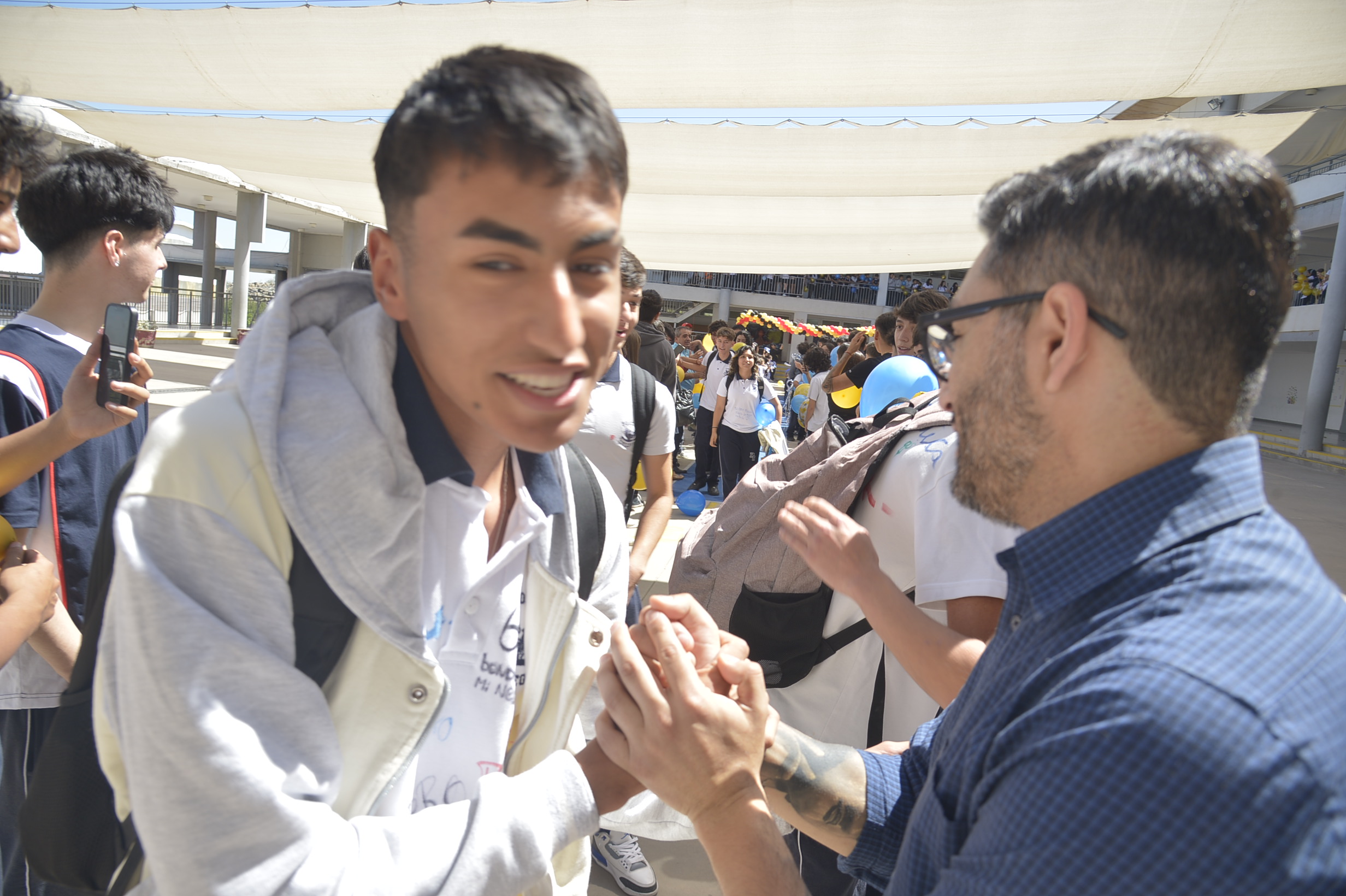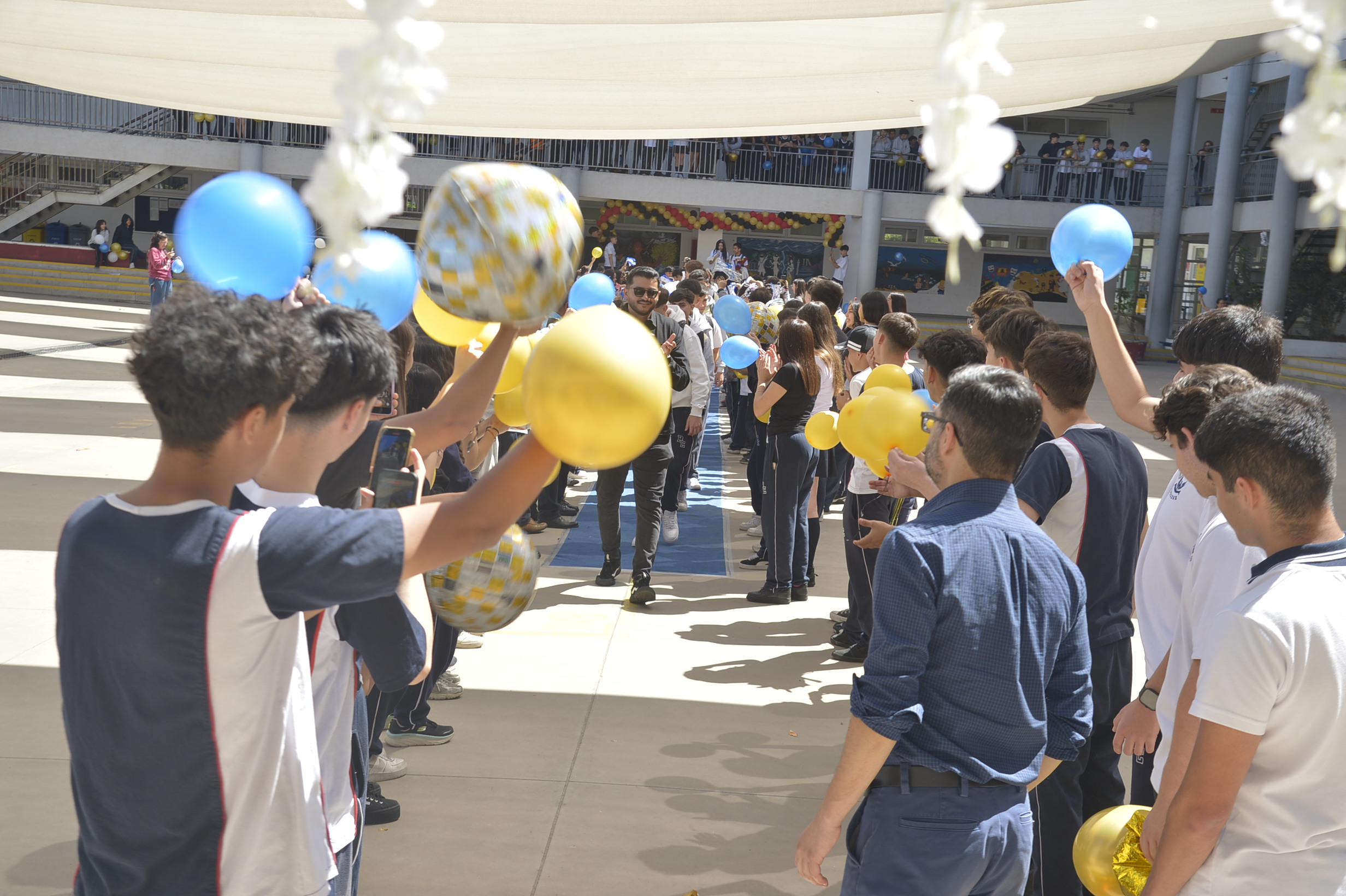 Al mediodía, llegaron los padres y apoderados de los y las estudiantes a buscarlos(as) y todo el colegio se formó en el patio central con cintas azules y blancas, globos y aplausos para despedirlos(as); fue un momento de gran emoción para todos(as).