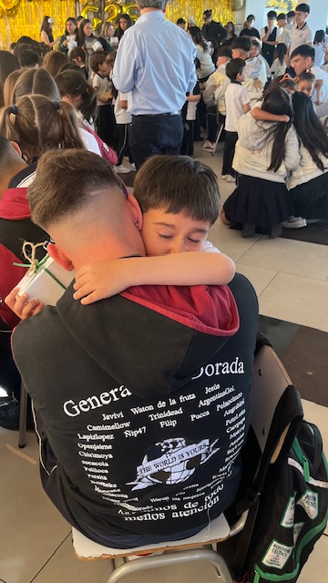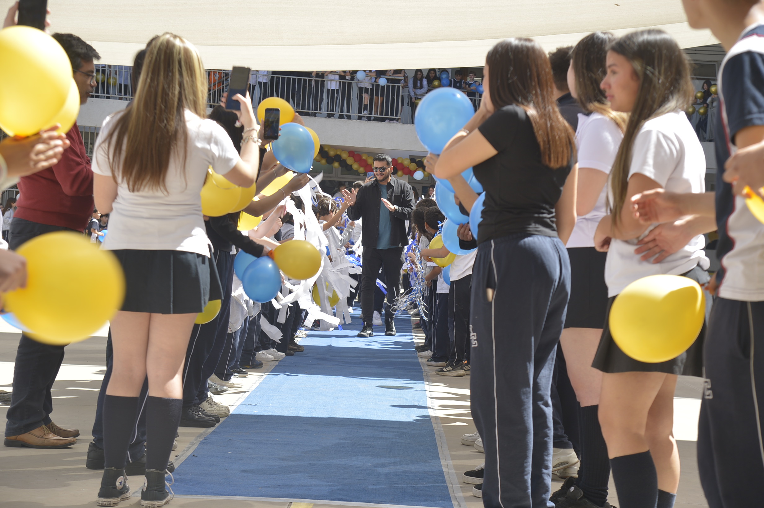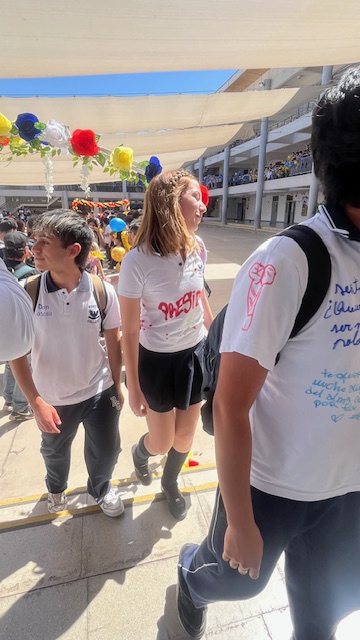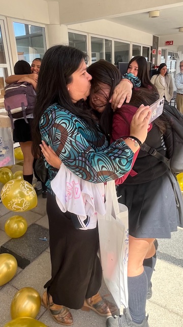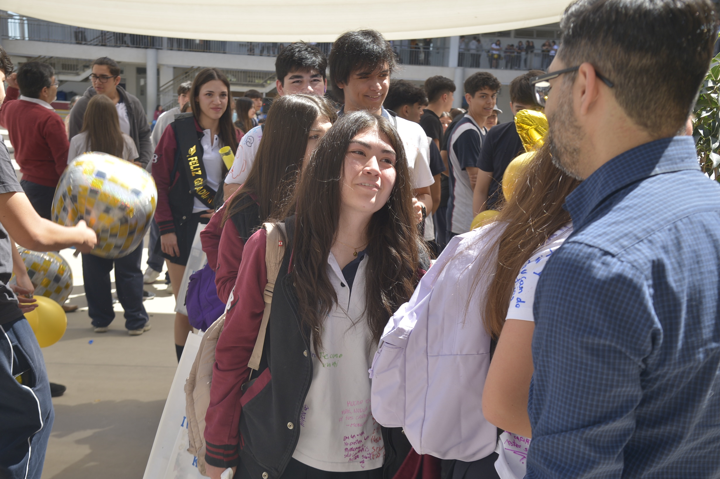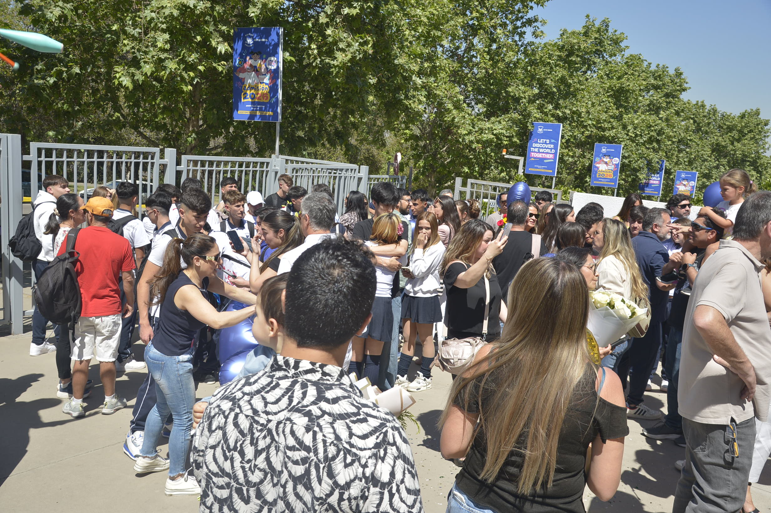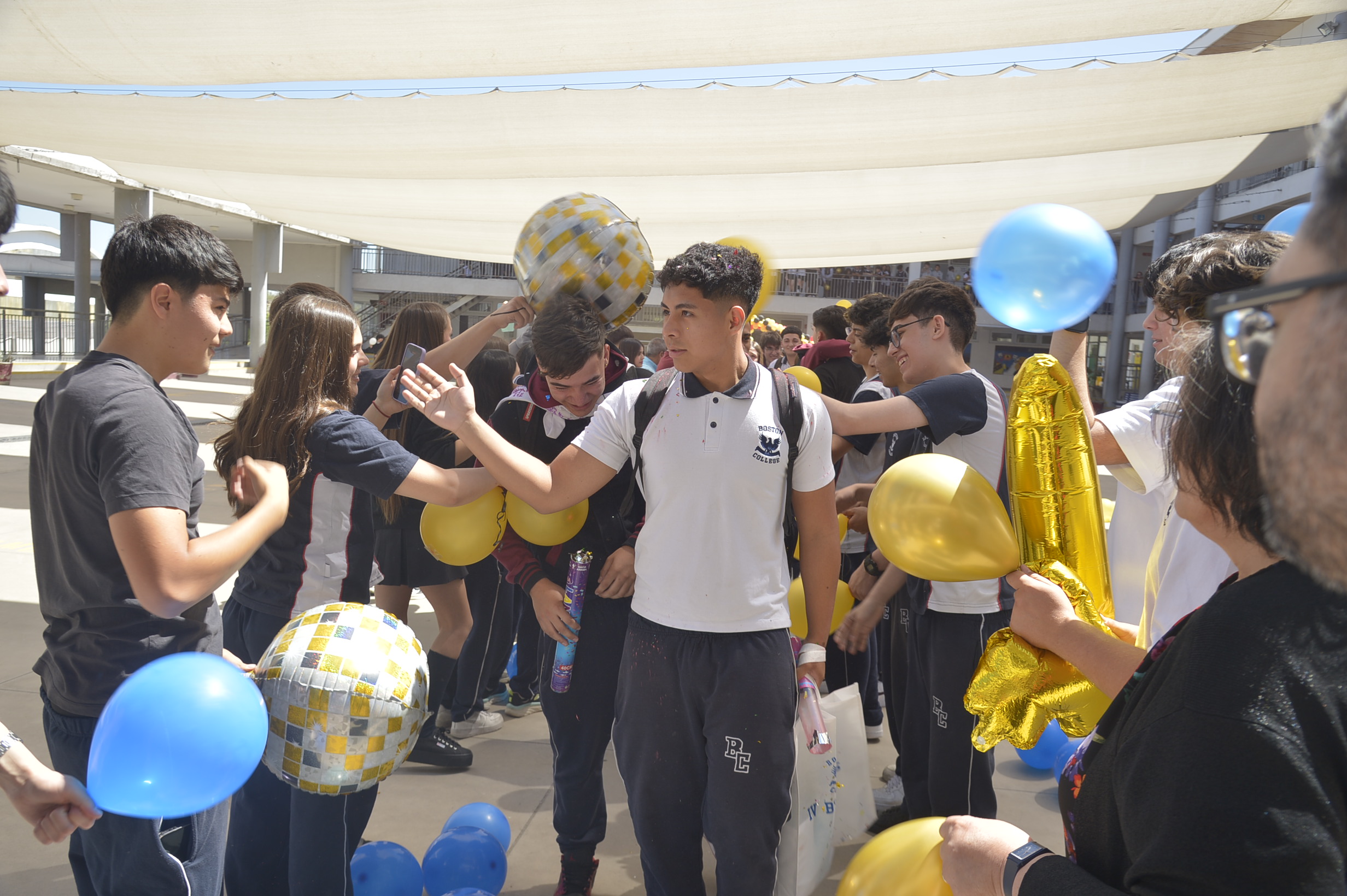 Al mediodía, llegaron los padres y apoderados de los y las estudiantes a buscarlos(as) y todo el colegio se formó en el patio central con cintas azules y blancas, globos y aplausos para despedirlos(as); fue un momento de gran emoción para todos(as).