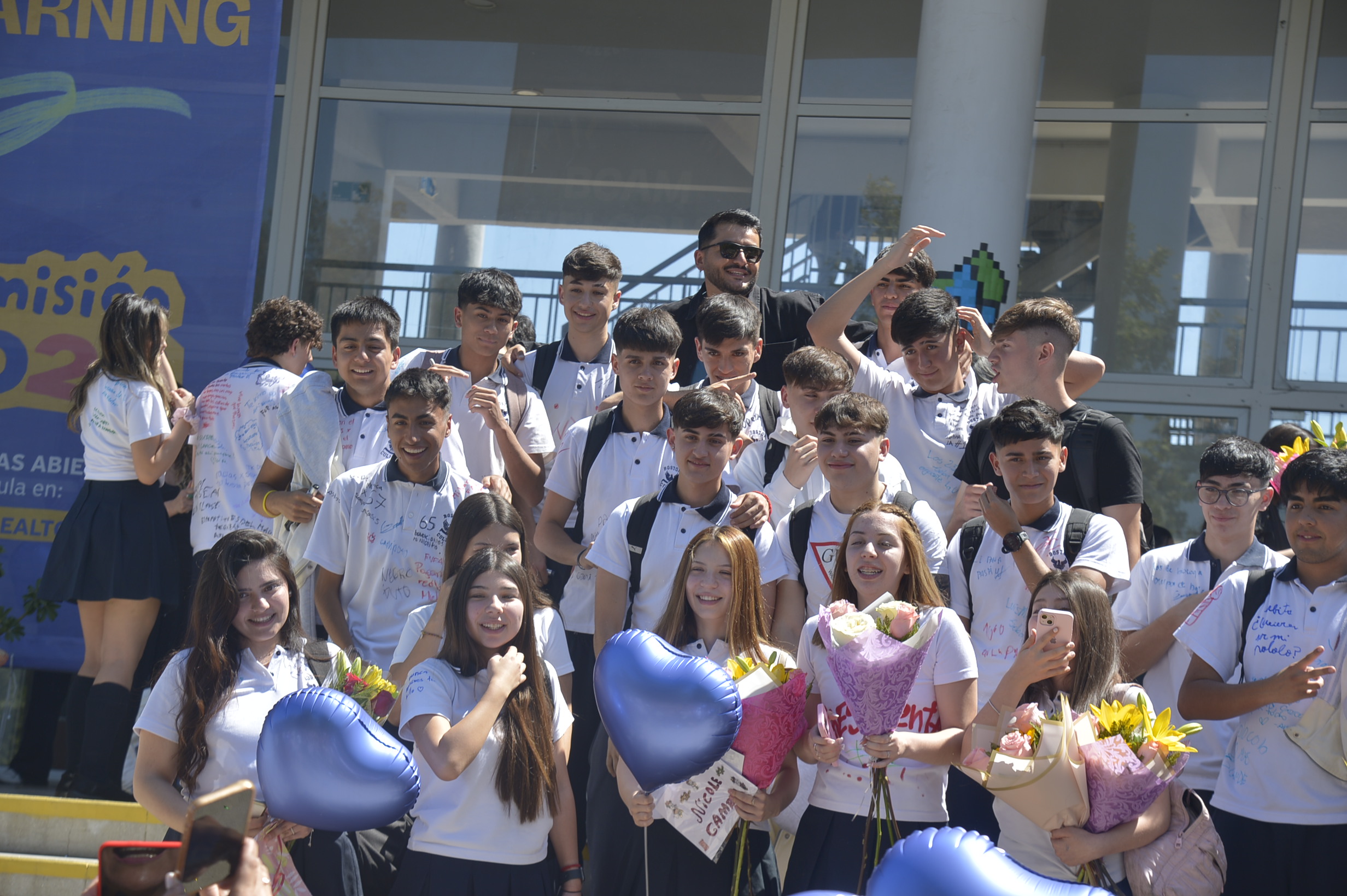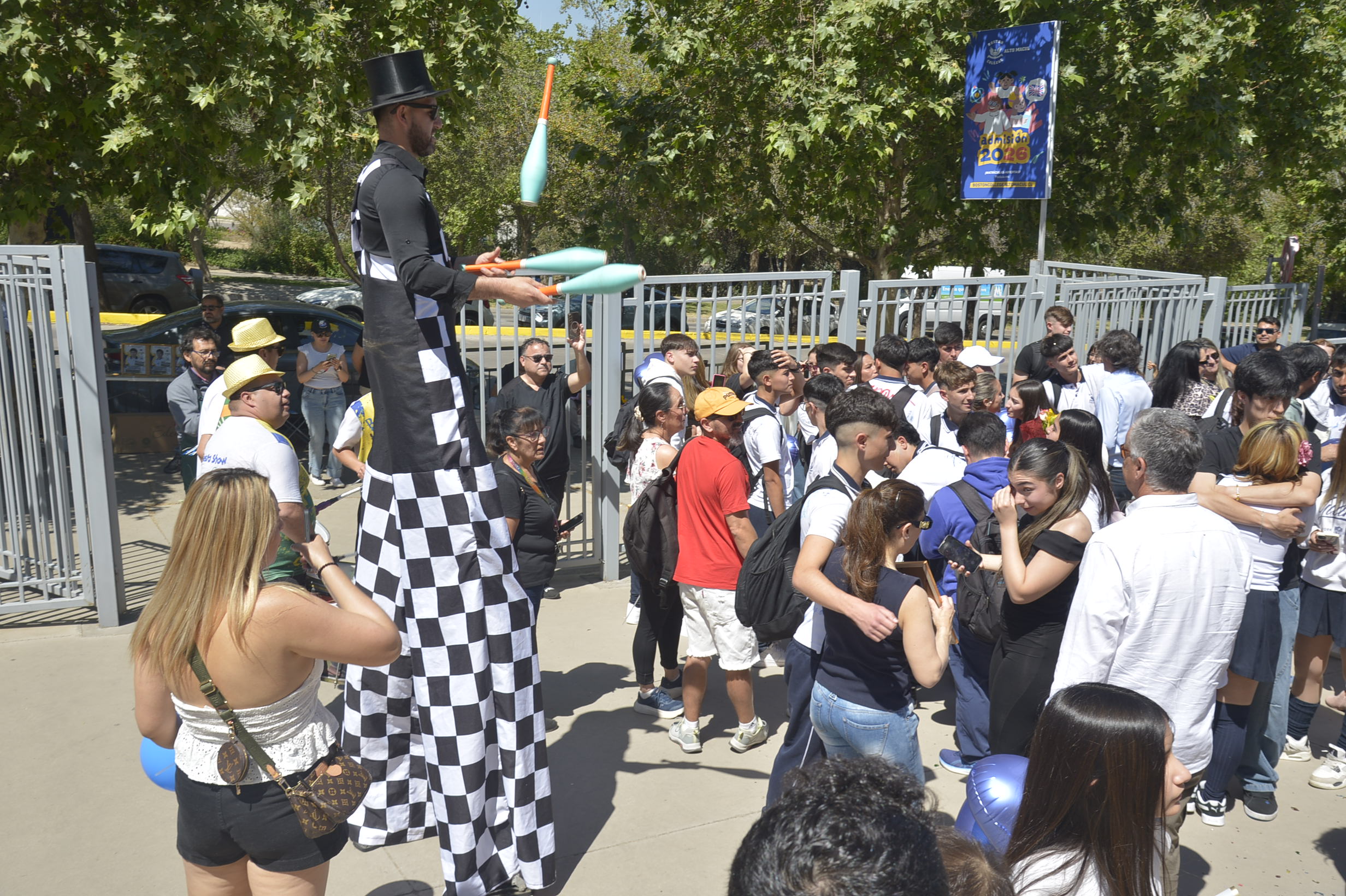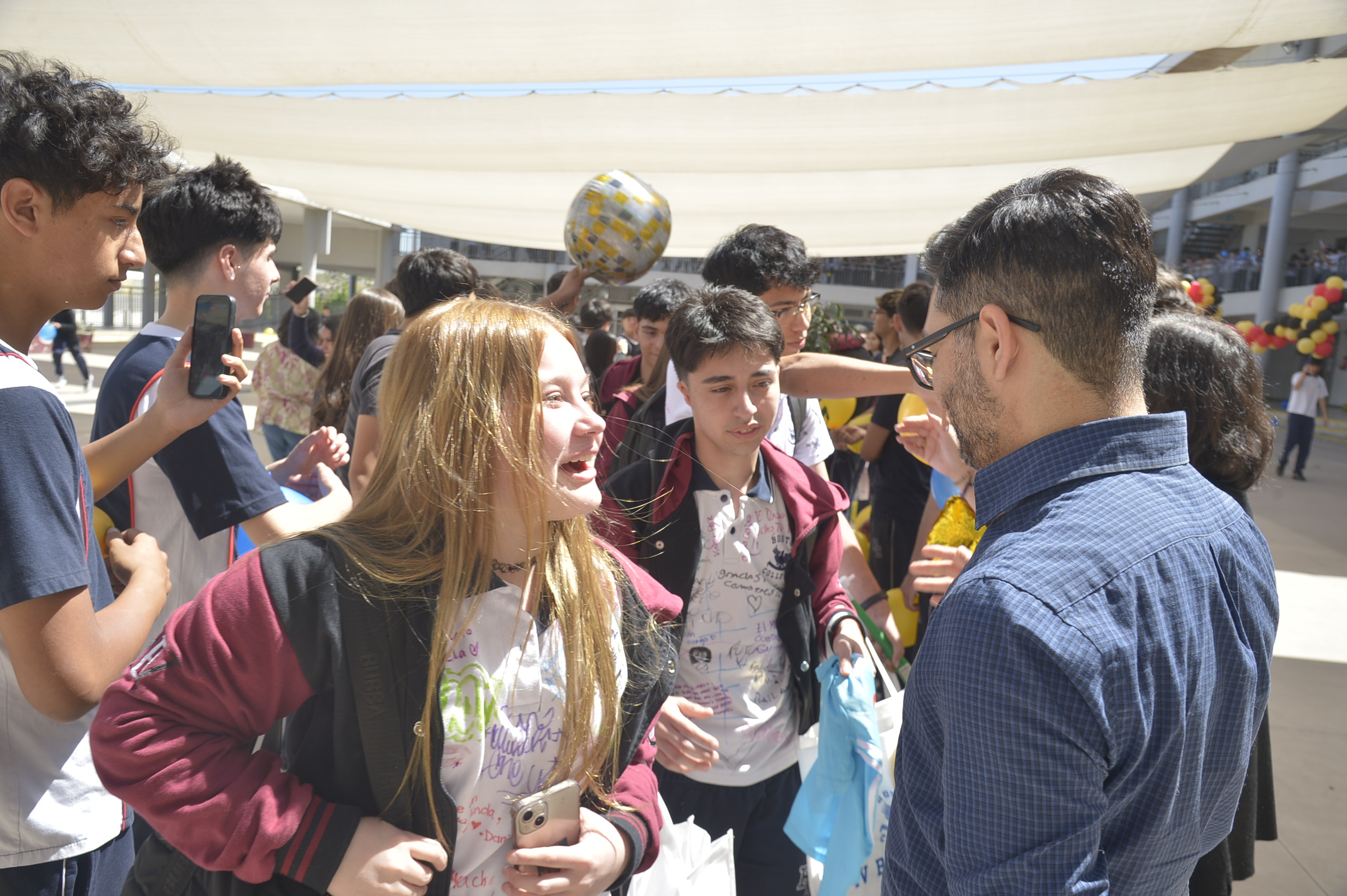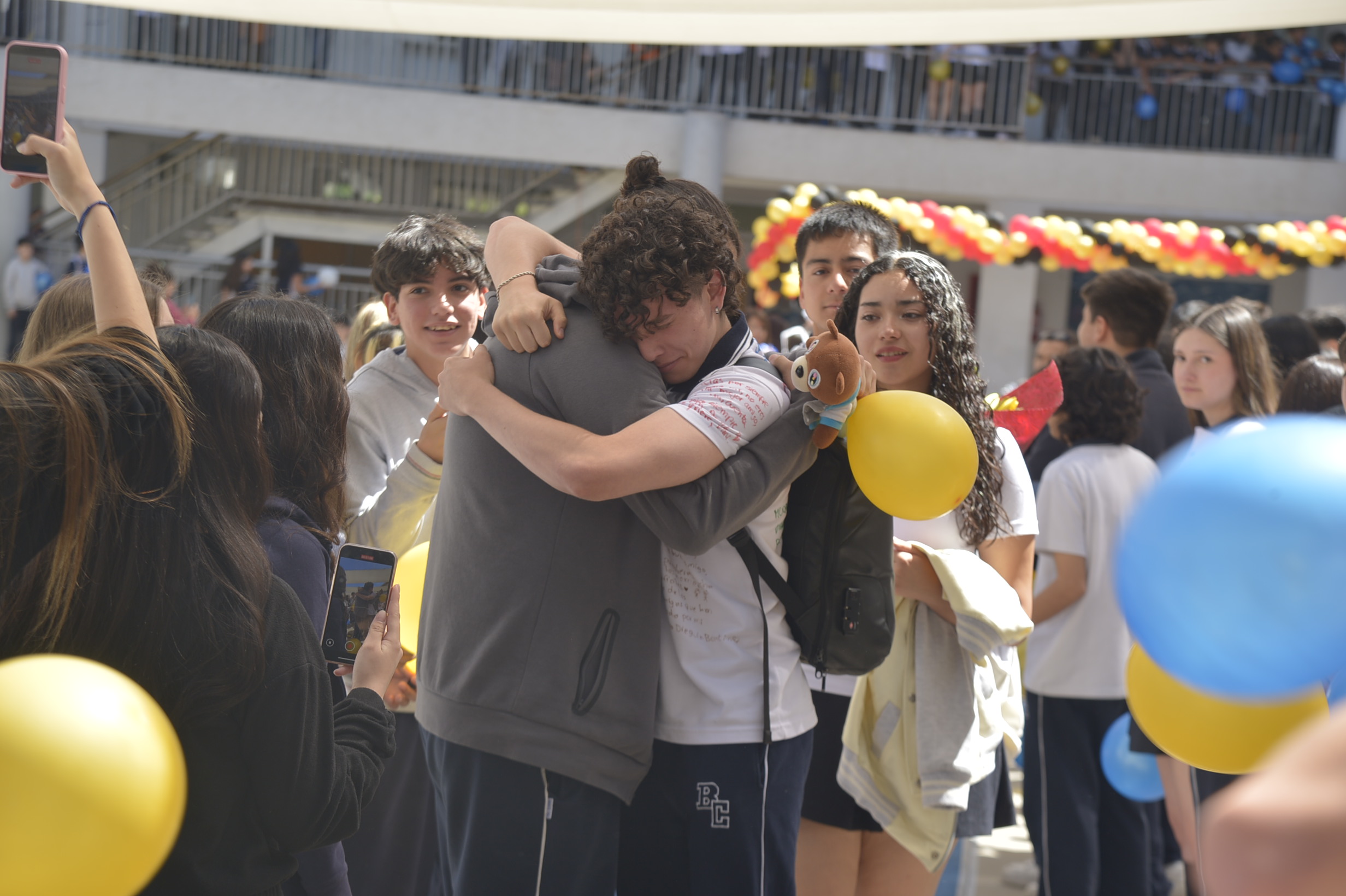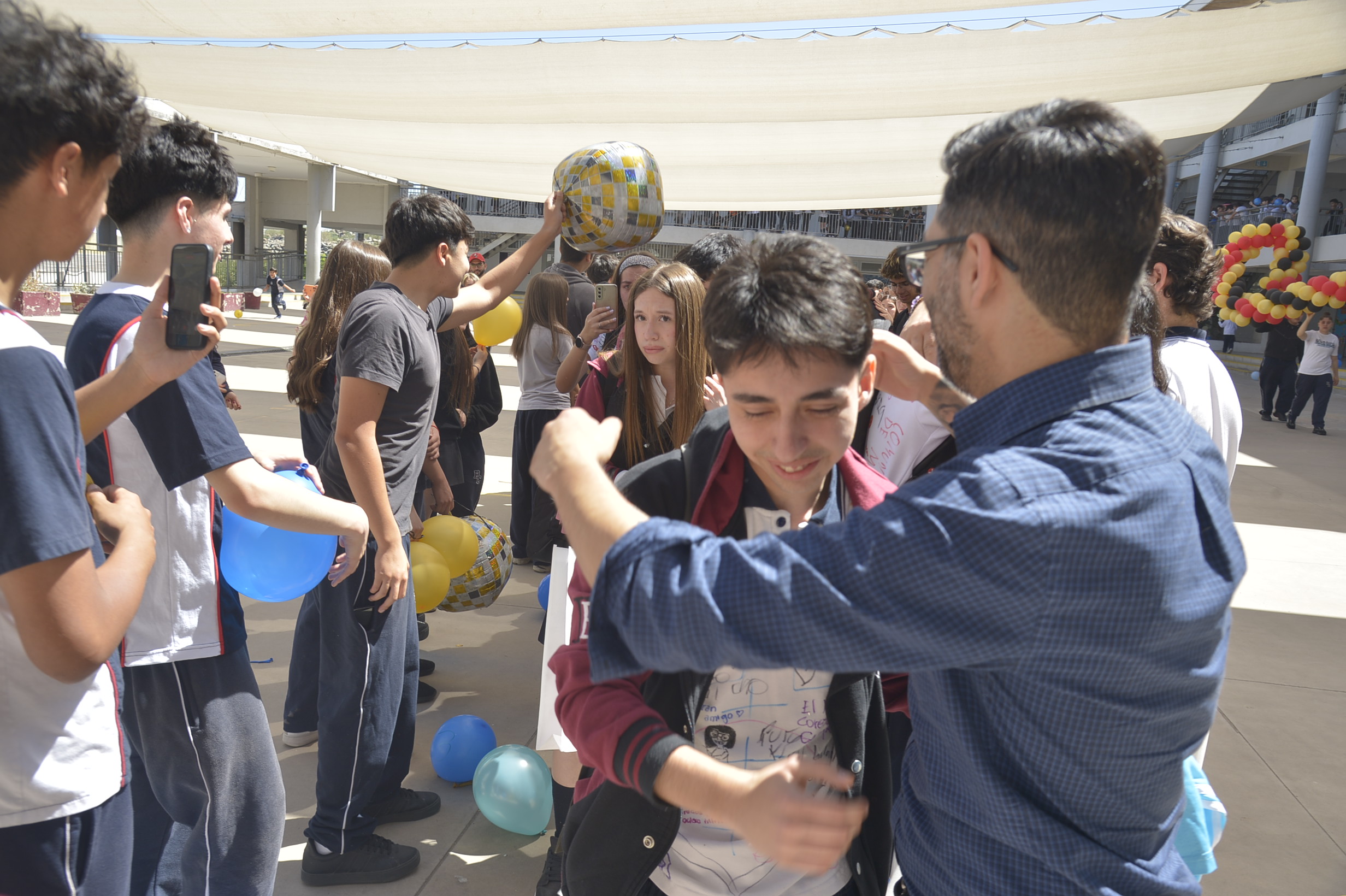 Al mediodía, llegaron los padres y apoderados de los y las estudiantes a buscarlos(as) y todo el colegio se formó en el patio central con cintas azules y blancas, globos y aplausos para despedirlos(as); fue un momento de gran emoción para todos(as).