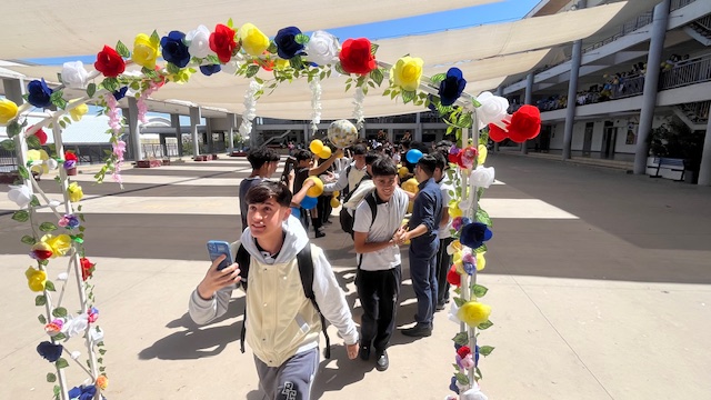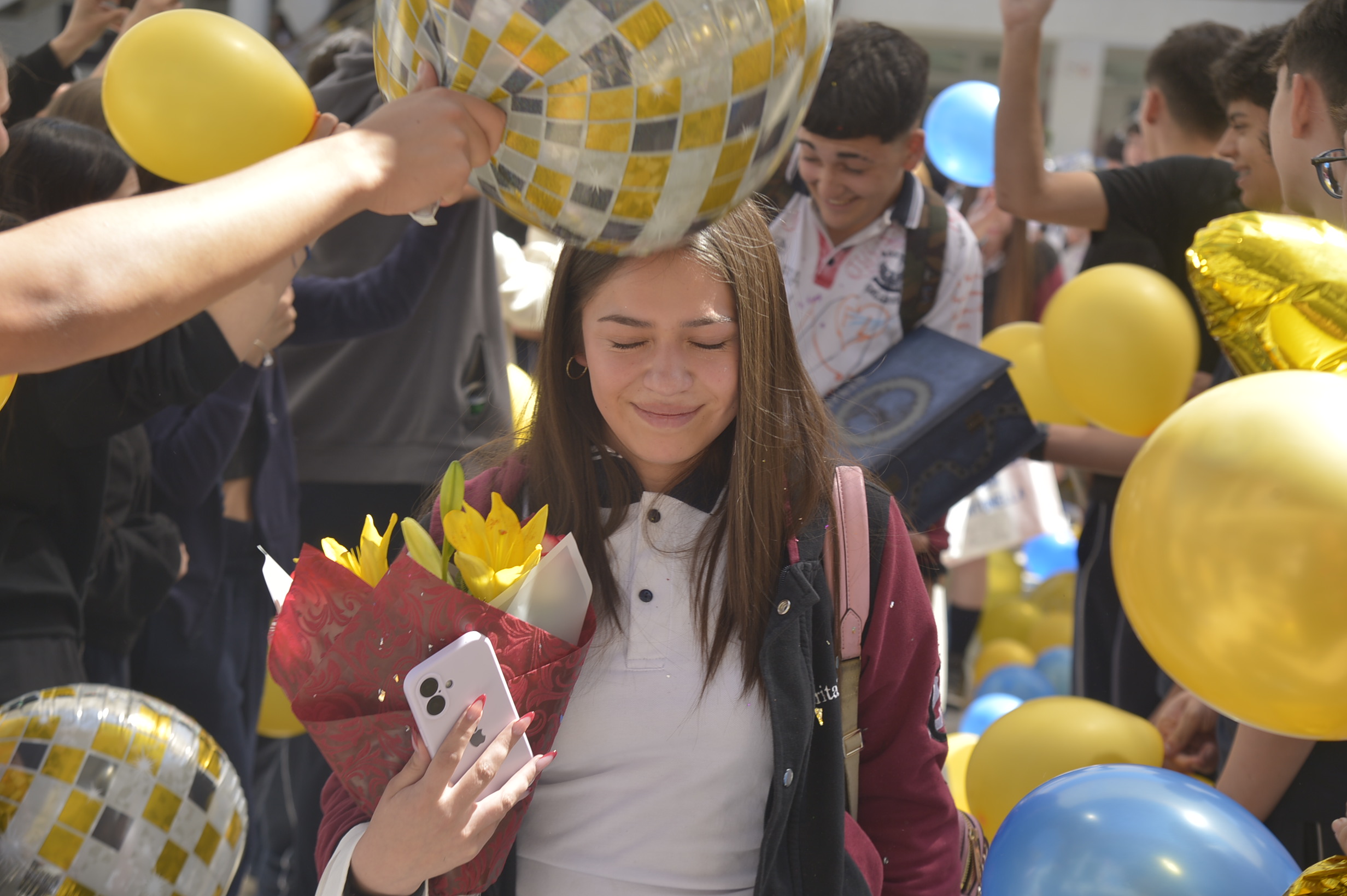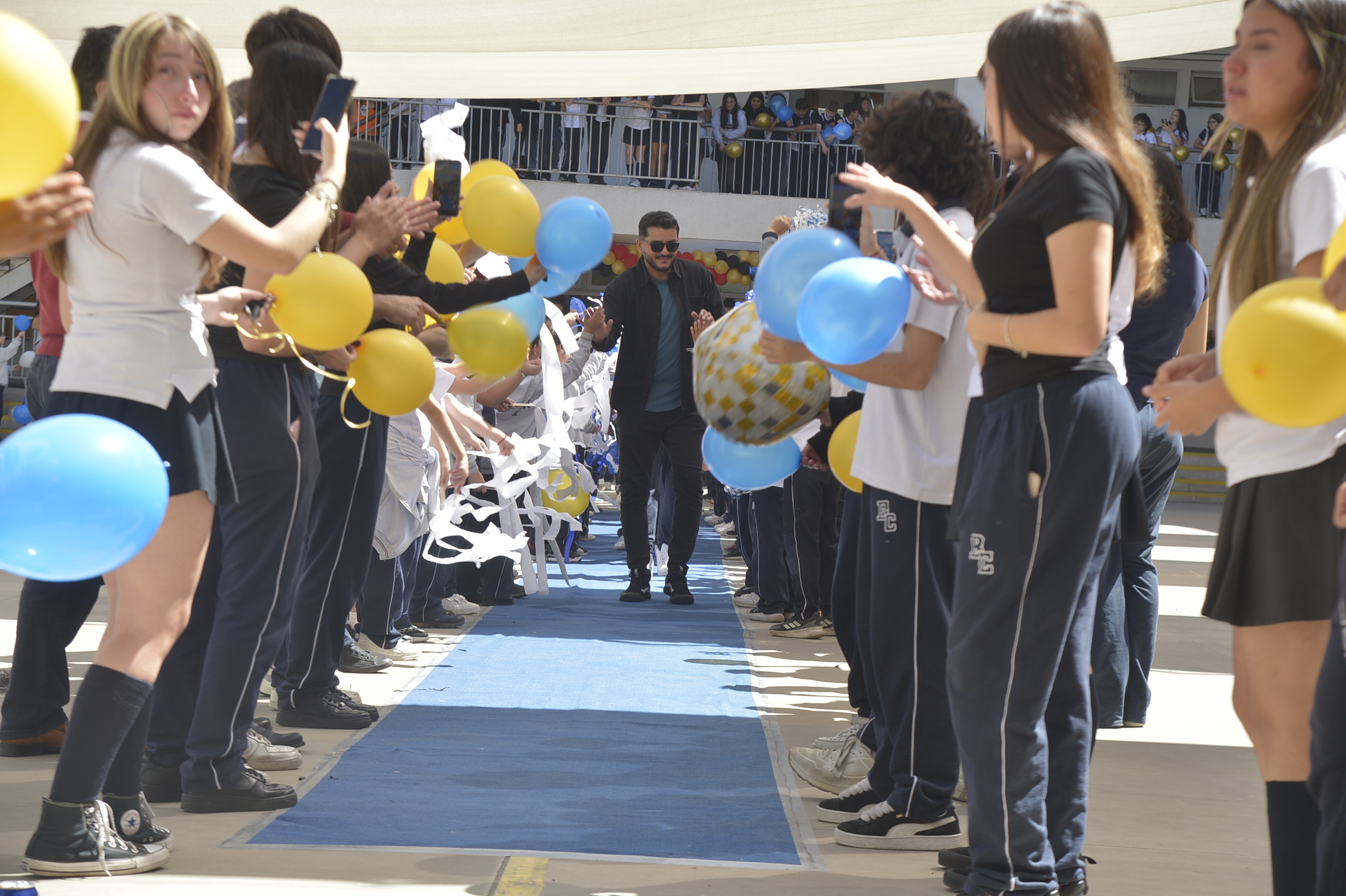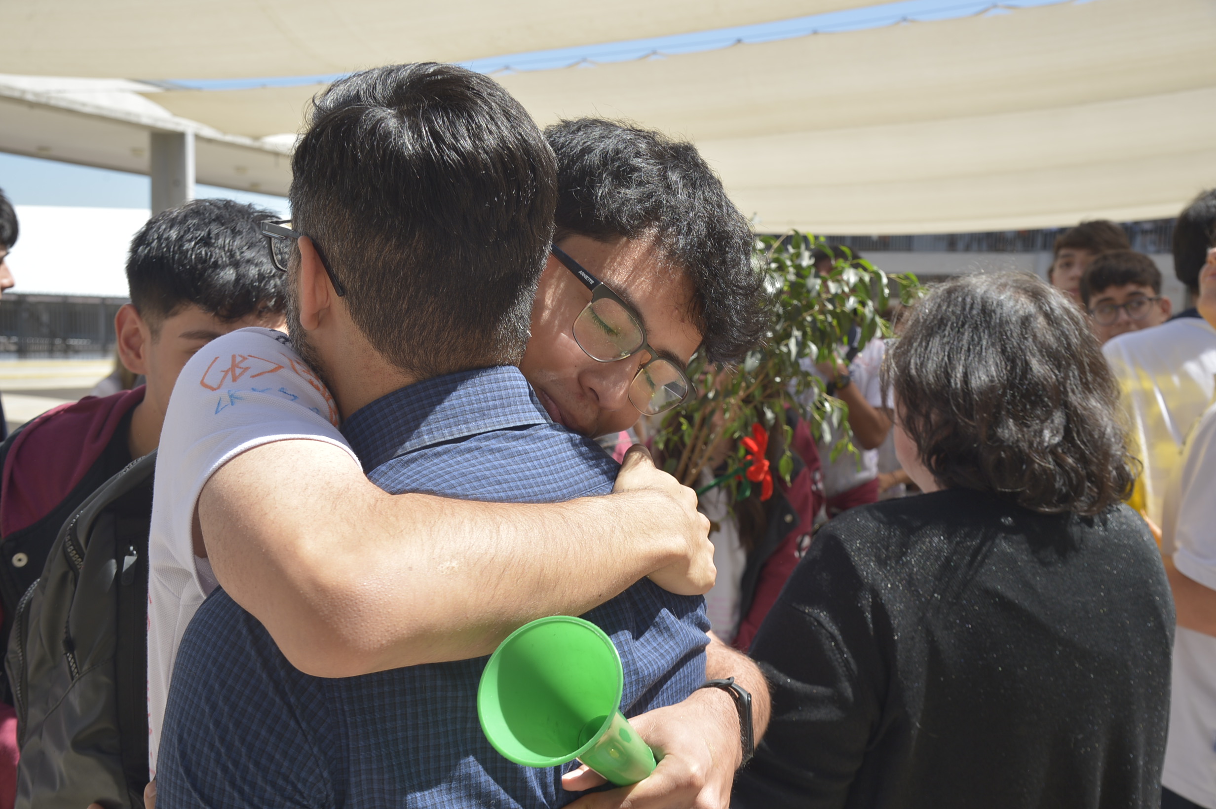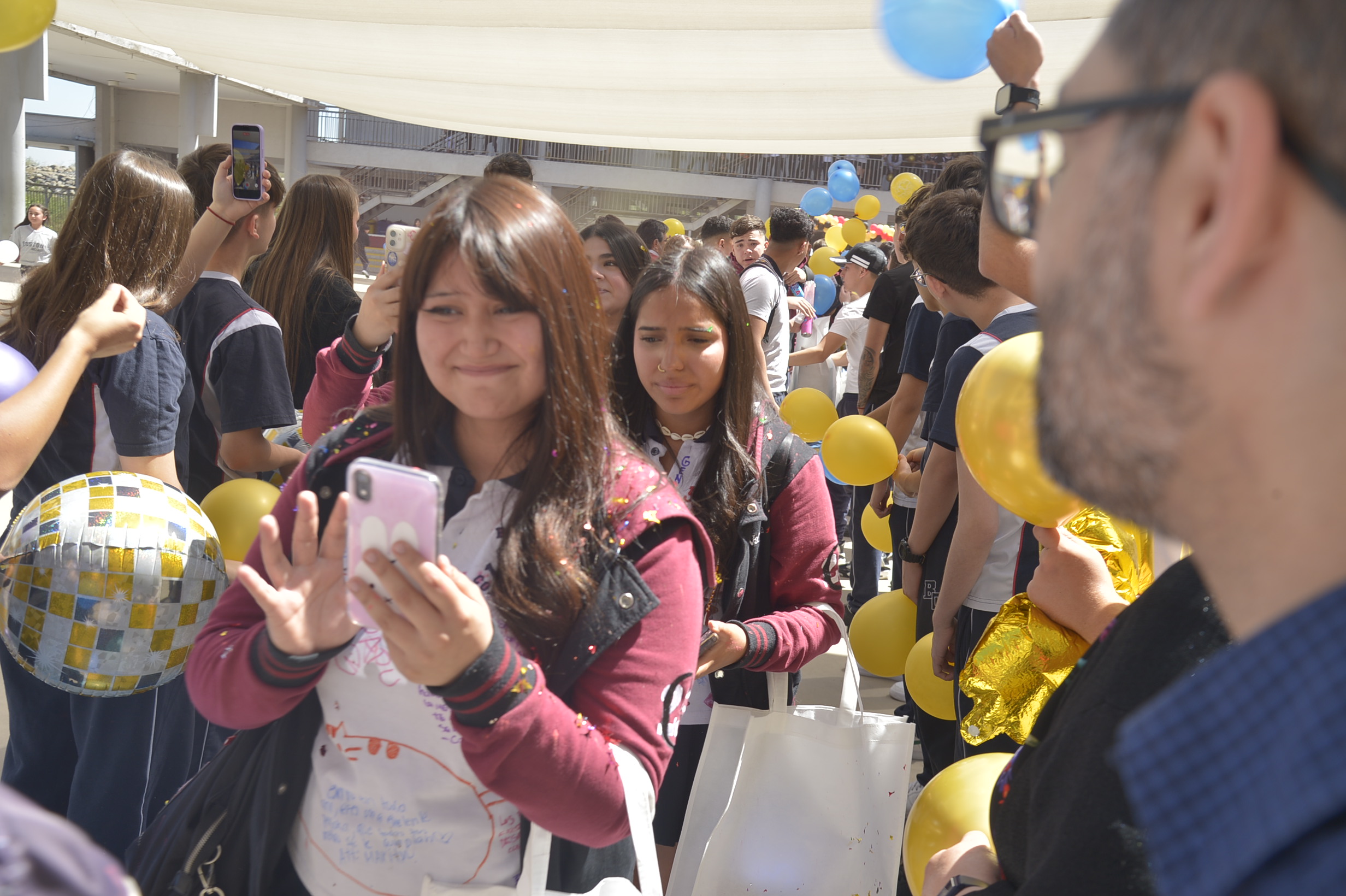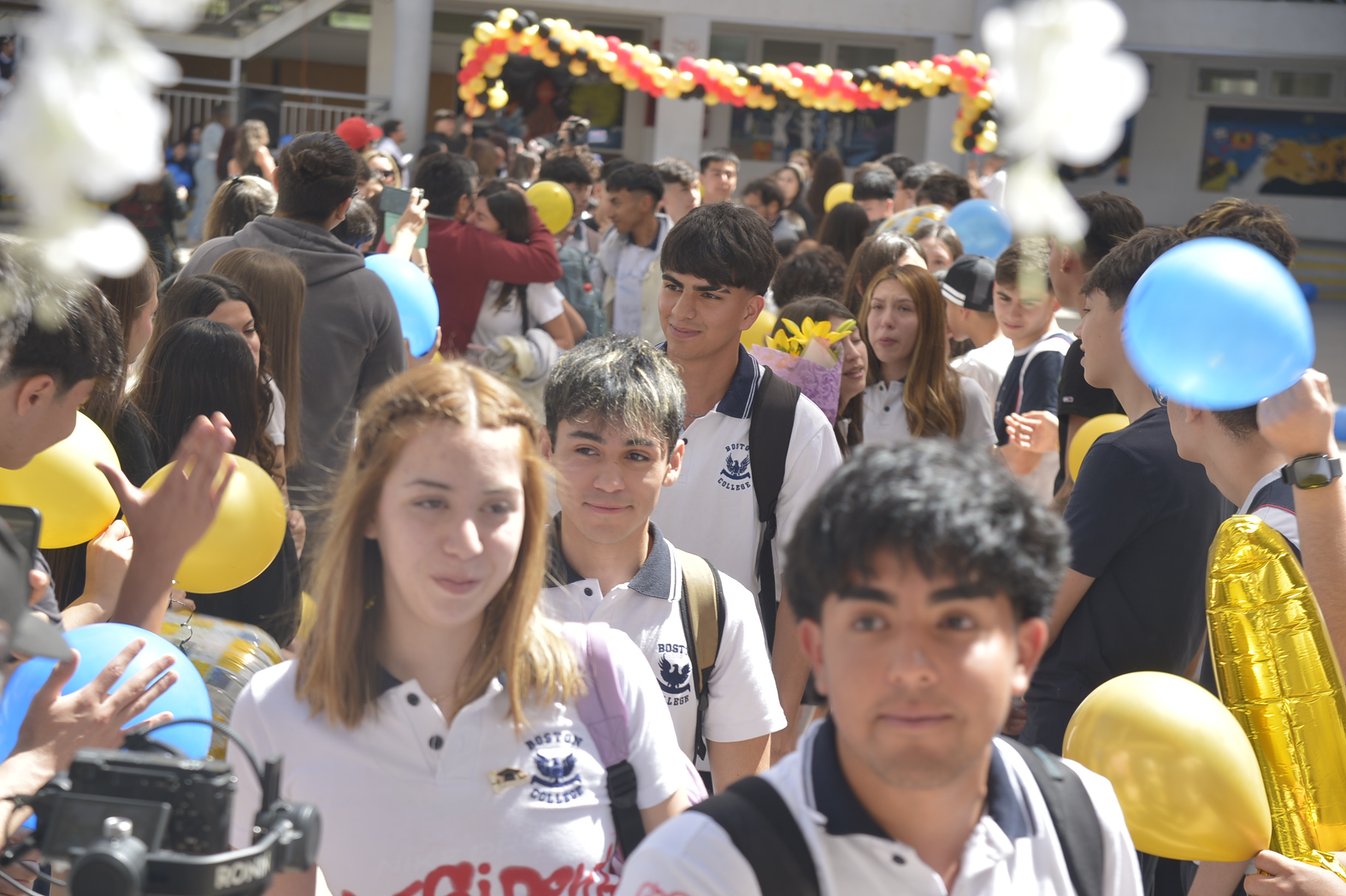 Al mediodía, llegaron los padres y apoderados de los y las estudiantes a buscarlos(as) y todo el colegio se formó en el patio central con cintas azules y blancas, globos y aplausos para despedirlos(as); fue un momento de gran emoción para todos(as).