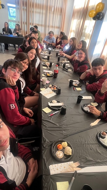 Hoy día 30 de octubre, los y las estudiantes de III Medio y sus profesores jefes Mr.Isaac Padilla y Mr.Esteban Barra, ofrecieron un desayuno de despedida a sus compañeros(as) de IV Medio junto a la coordinadora del ciclo, Miss Marly Cruz y sus profesoras jefes, Miss Valentina Escobar y Miss Karina Monje, como una forma de reconocer su paso por el colegio y las vivencias y experiencias que compartieron juntos.