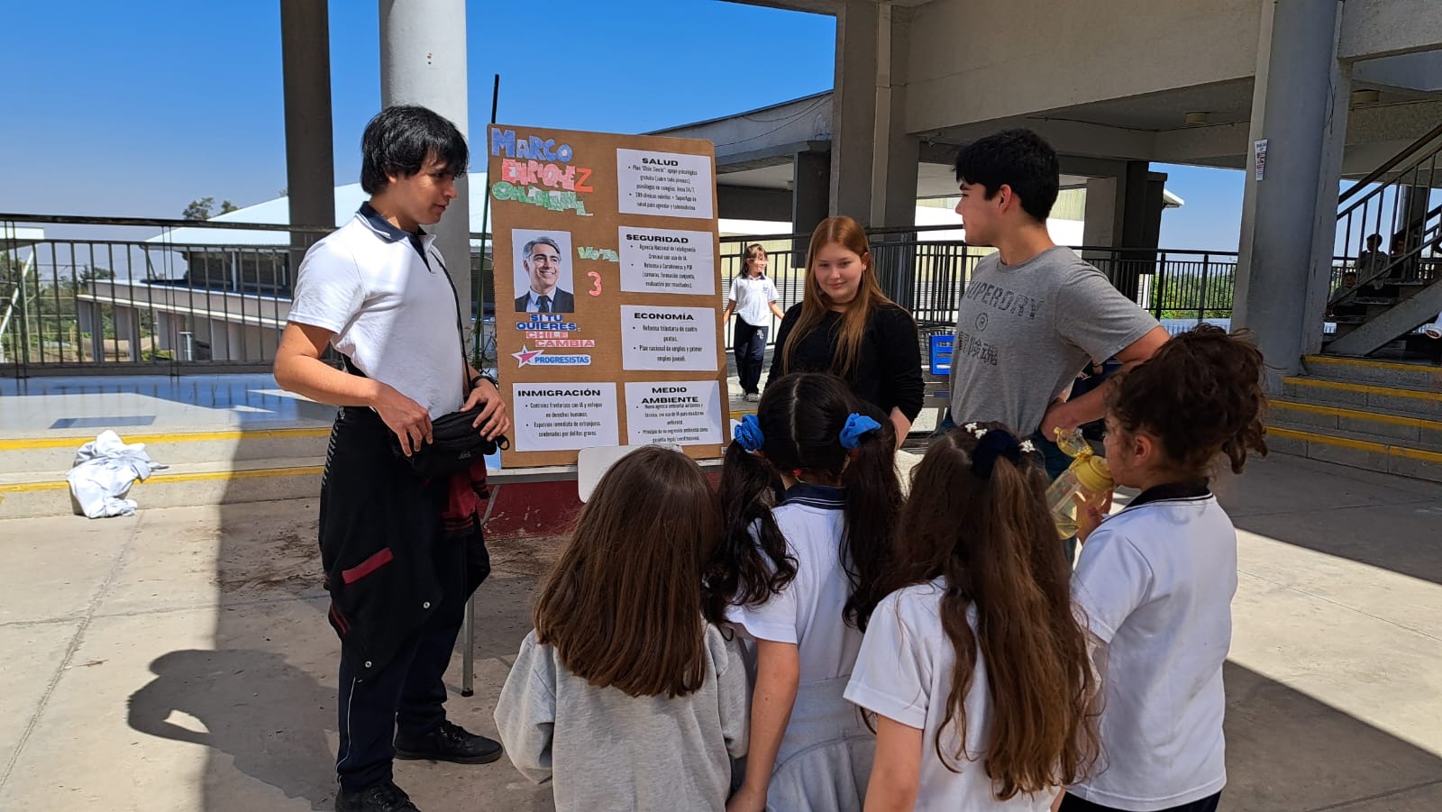 En la asignatura de Educación Ciudadana los estudiantes de cuarto medio A y B presentaron a la comunidad las propuestas de los candidatos presidenciales que se enmarca en el desarrollo de competencias ciudadanas, promoviendo el pensamiento crítico, la participación democrática y el compromiso social. Esta experiencia permite vincular los contenidos curriculares con la realidad política del país, fomentando una ciudadanía activa e informada.
