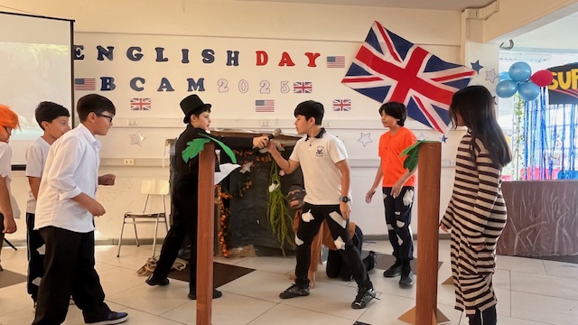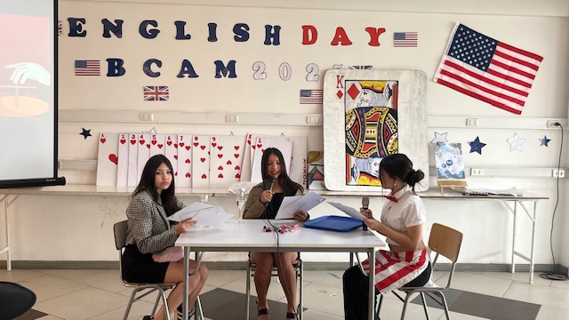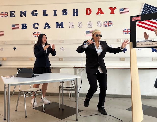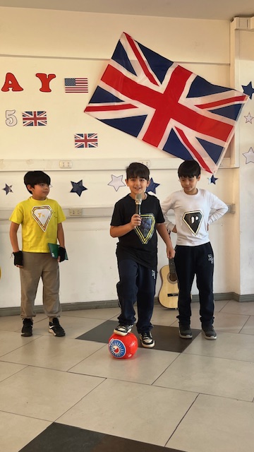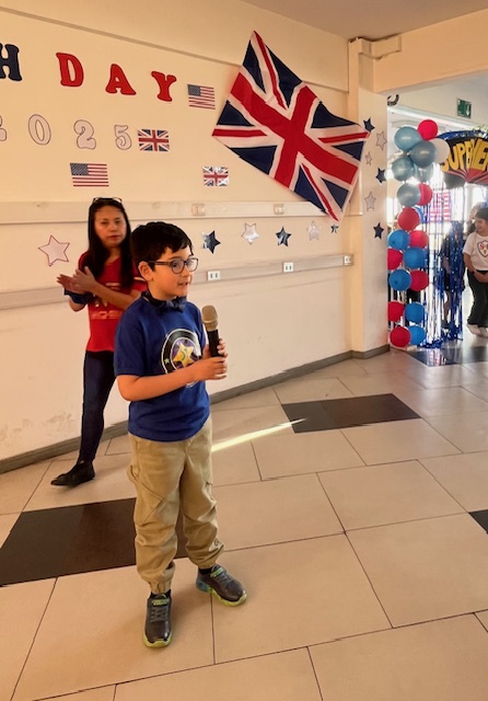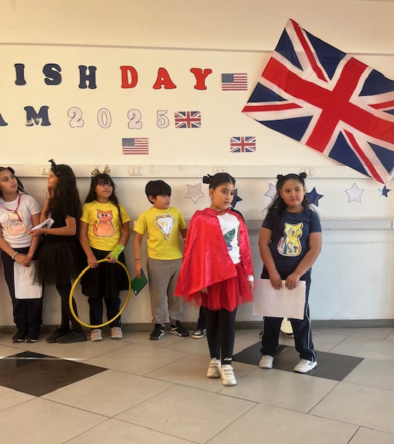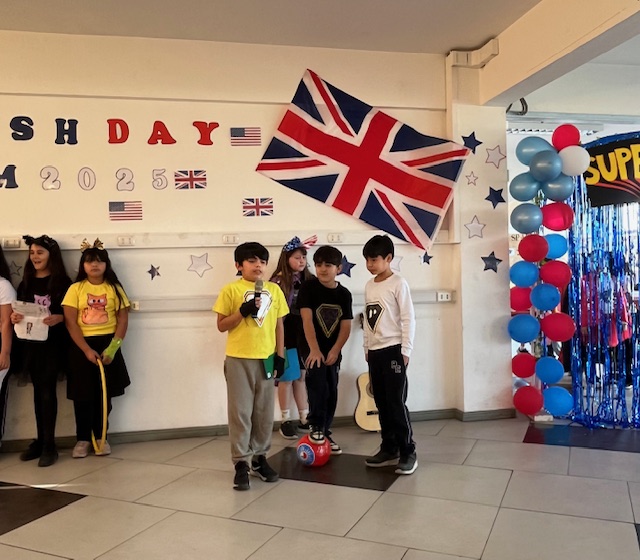 Esta semana, celebramos el Día del Inglés con los alumnos de 2º y 3er ciclo. Junto con sus profesores —Miss Marcela Huerta, Miss Evelyn Aguilera, Miss Nadia Gallardo, Mr. Sergio Delpiano y Miss Maluchi Castillo—, prepararon sus presentaciones con gran dedicación y entusiasmo. Disfrutamos de espectáculos entretenidos, noticias y conversaciones llenas de humor y alegría.