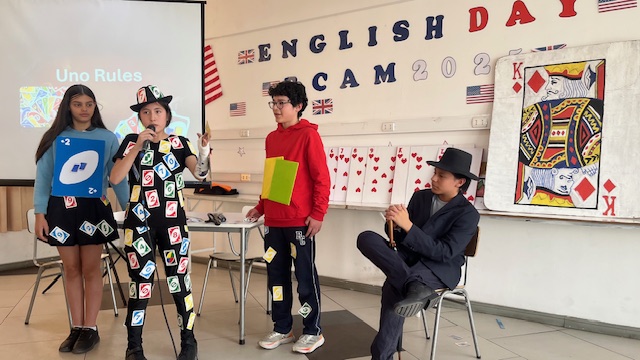 This week, we had a fun English Day celebration with the 2nd- and 3rd-cycle students. Along with their teachers —Miss Marcela Huerta, Miss Evelyn Aguilera, Miss Nadia Gallardo, Mr. Sergio Delpiano, and Miss Maluchi Castillo —they prepared with great dedication and enthusiasm for their presentations. We enjoyed entertaining shows, news, and conversations filled with humor and joy.