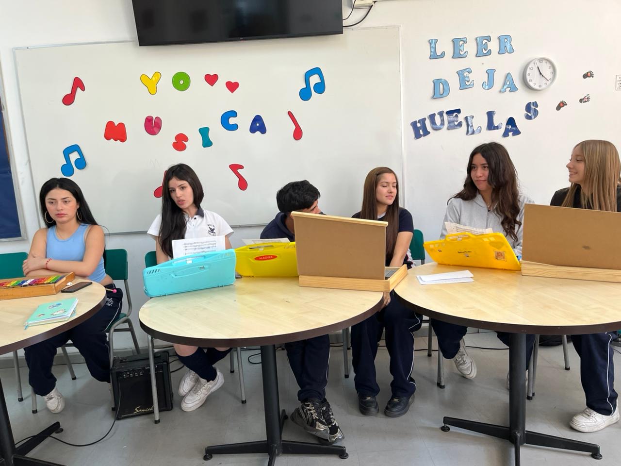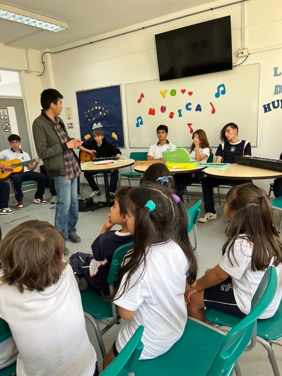 En una presentación llena de alegría y música, los estudiantes del Electivo de Música de Segundos Medios, a cargo del profesor Benjamín Collao, realizaron una presentación musical a nuestros alumnos y alumnas de Pre-Kinder.