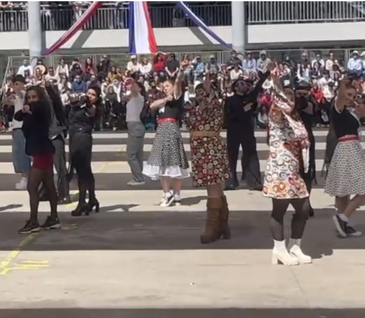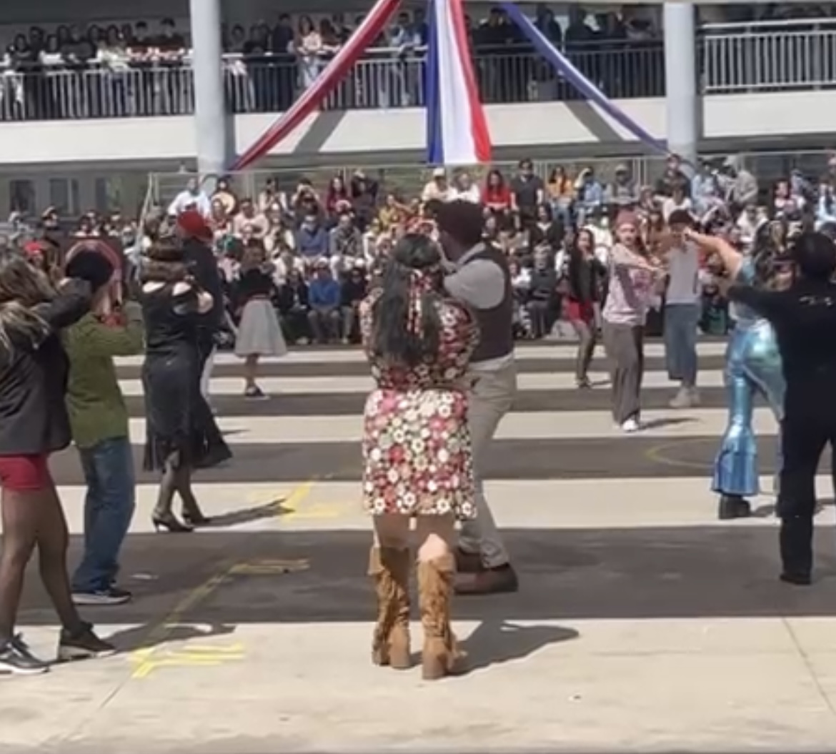 Al mismo tiempo, nuestros docentes inauguraron la ceremonia presentando diversos bailes de distintas épocas de Estados Unidos.