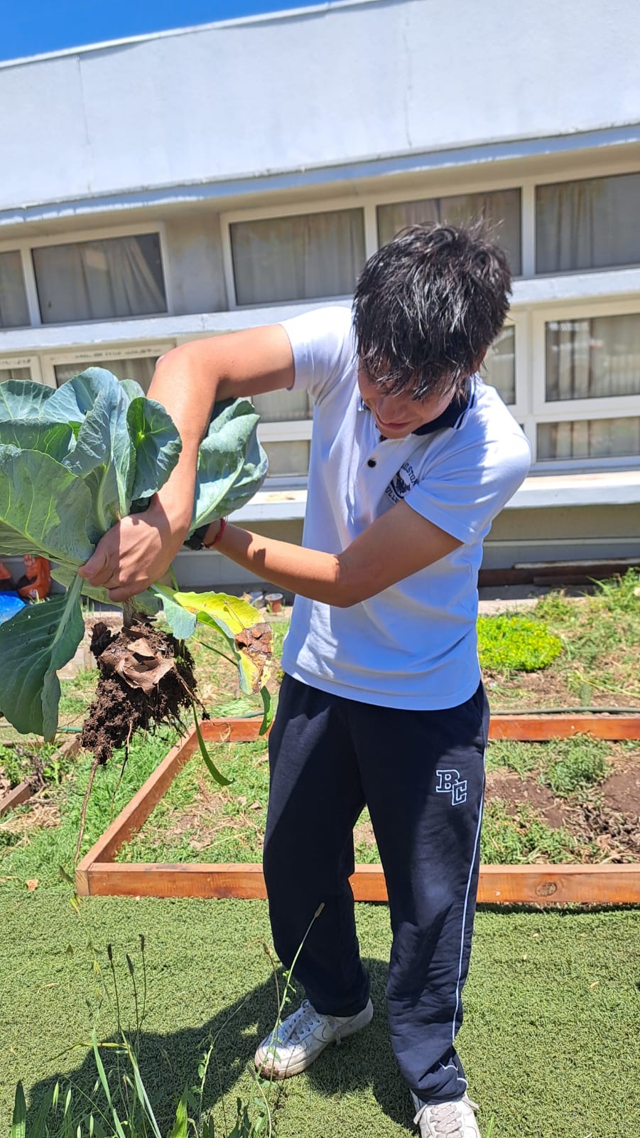 Los estudiantes de tercero medio de la asignatura Geografía, Territorio y Desafíos Socioambientales celebran el cierre de un proyecto que comenzó en marzo de 2025: la Huerta Urbana Boston. Tras meses de esfuerzo, aprendizaje y colaboración, los jóvenes cosecharon con orgullo brócolis, repollos, puerros y habas, demostrando que la geografía no solo se estudia en los libros, sino que también se vive en los espacios cercanos.