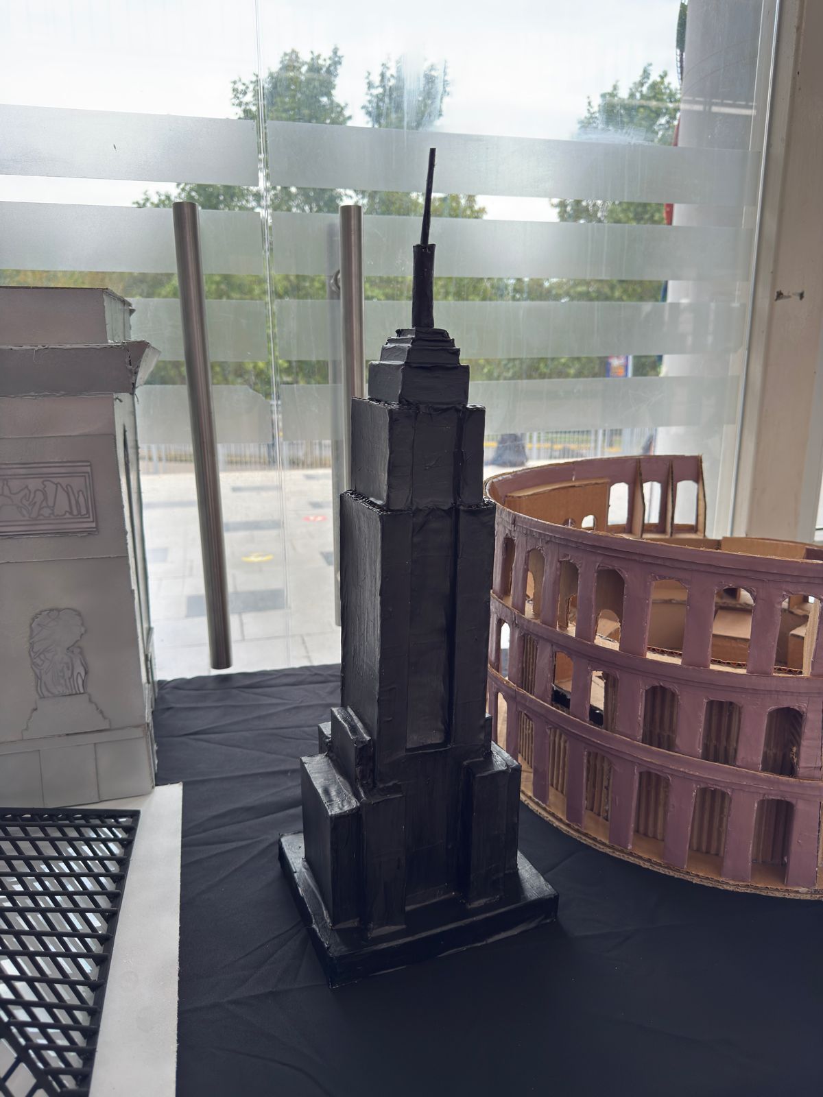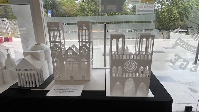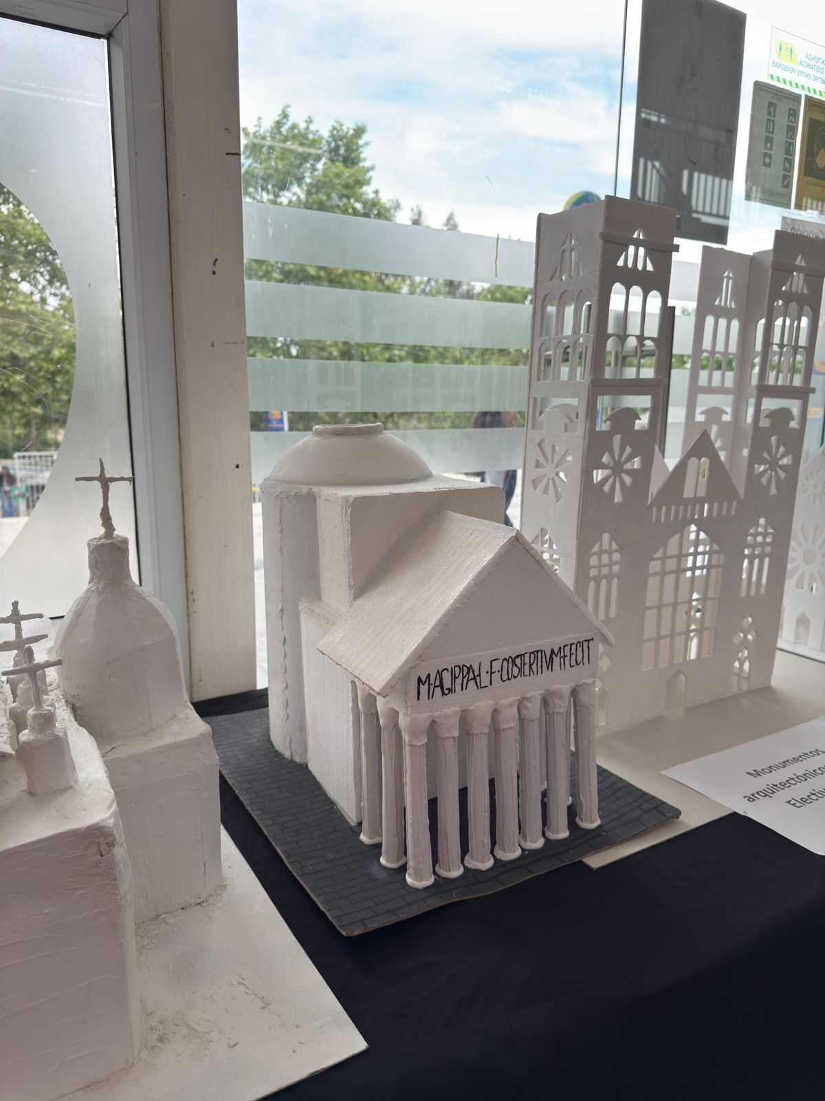 De acuerdo con la unidad:” Unidad (3): “Creando obras multimediales a partir de imaginarios personales”, los estudiantes recrearon monumentos a escala simulando la proporción real de las diversas arquitecturas expuestas.