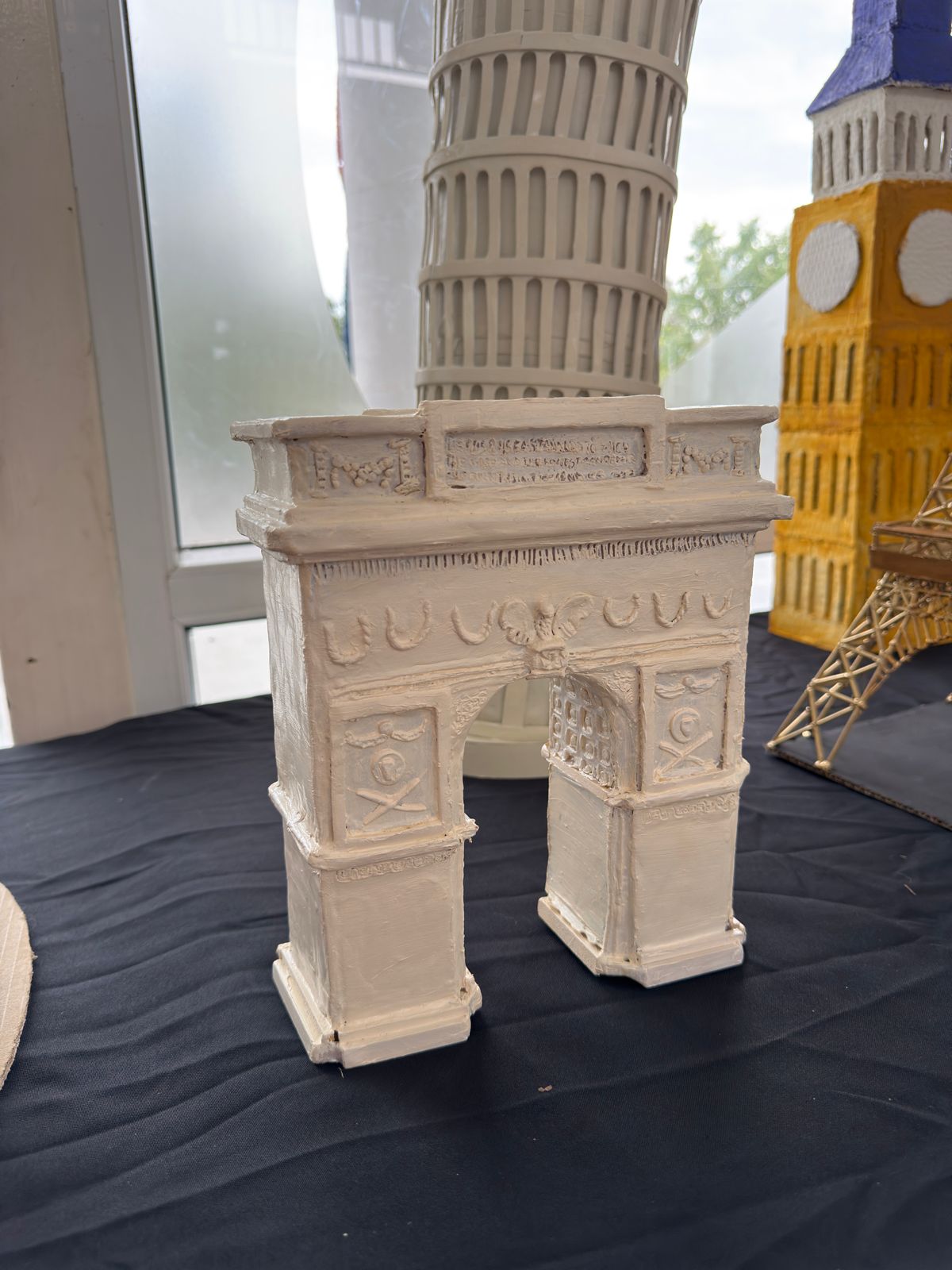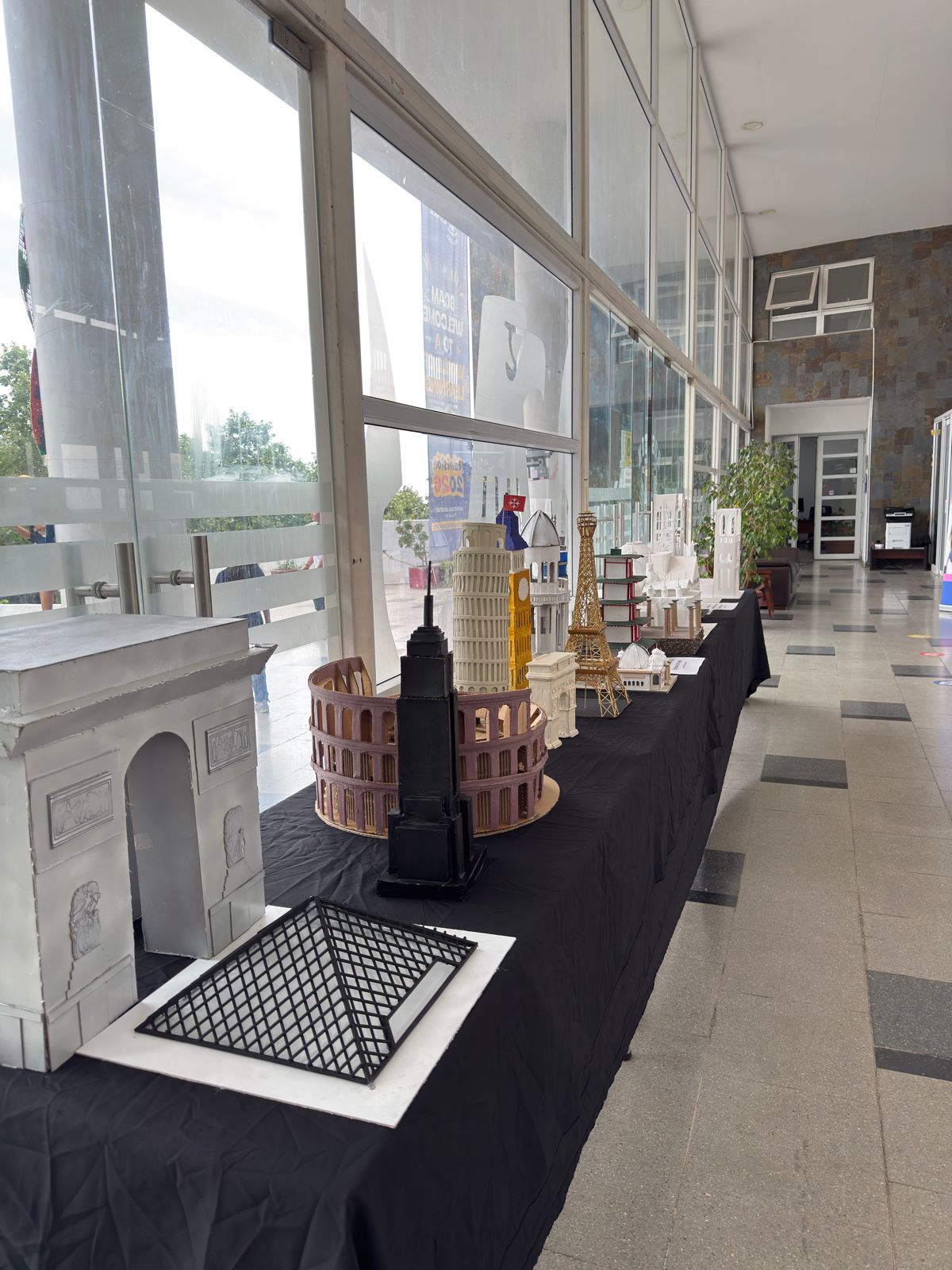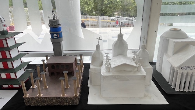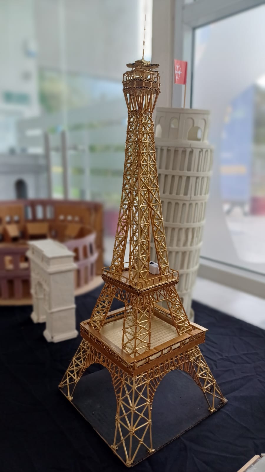 De acuerdo con la unidad:” Unidad (3): “Creando obras multimediales a partir de imaginarios personales”, los estudiantes recrearon monumentos a escala simulando la proporción real de las diversas arquitecturas expuestas.