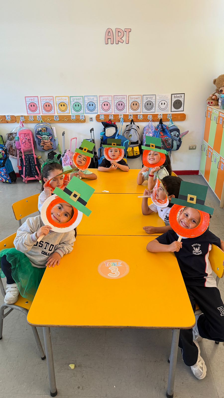 The teachers explained to the children beforehand what is celebrated in Ireland on this day. They prepared some masks and came wearing something green.