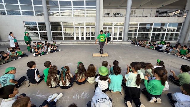 Mr. Alex Torres, our first-grade teacher, danced the Step Dance and shared the legend of the leprechaun, sparking curiosity and enthusiasm for Irish folklore: “The leprechaun always carries a hidden pot of gold, and the sound of its coins is a sign of its presence. The clinking of the coins represents its magic… You can hear the sound before you see it.”